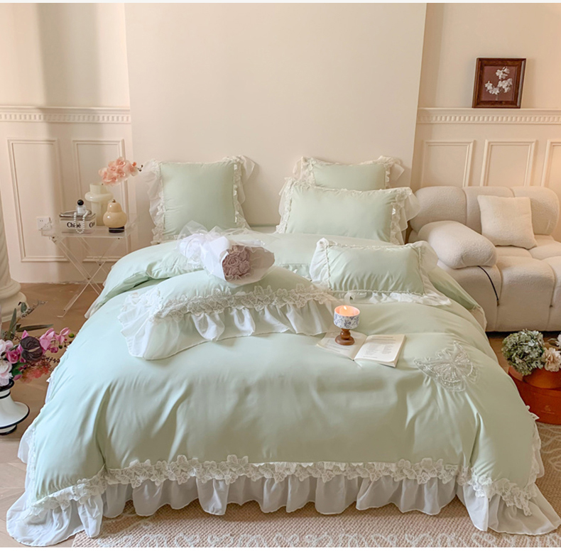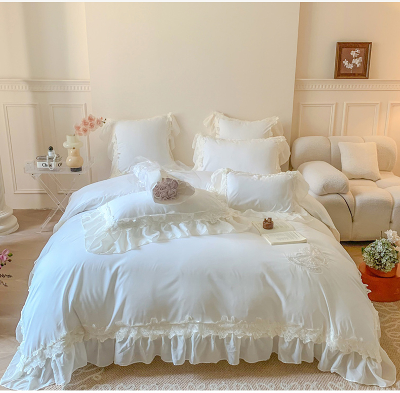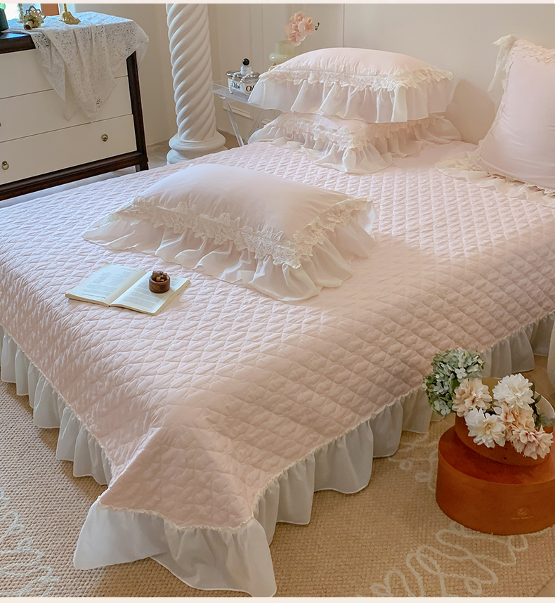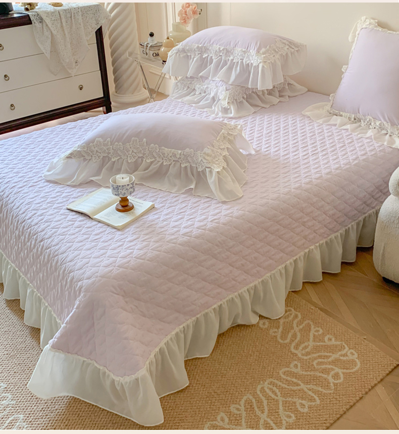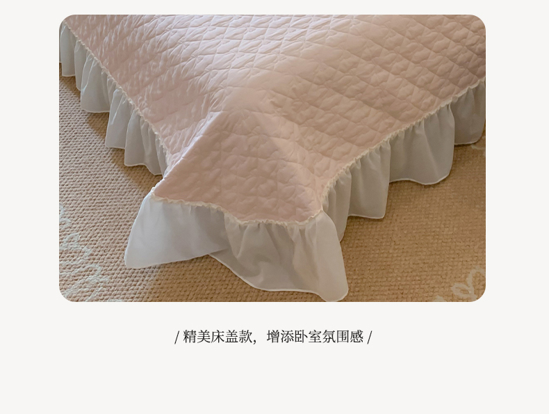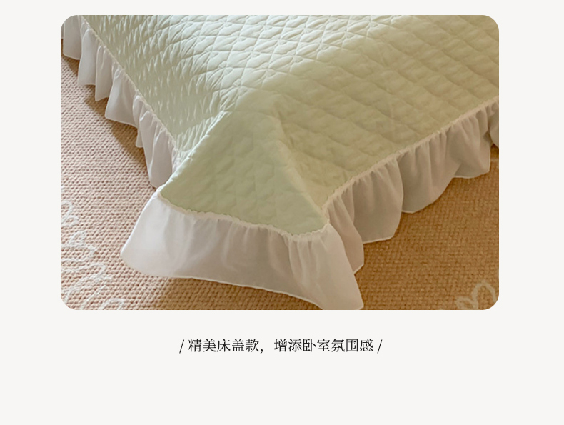 (总)吾欢心 2025新款公主风雪纺边四季通用夹棉床盖,床盖白,床盖粉,床盖黄,床盖咖,床盖绿,床盖抹茶绿,床盖紫