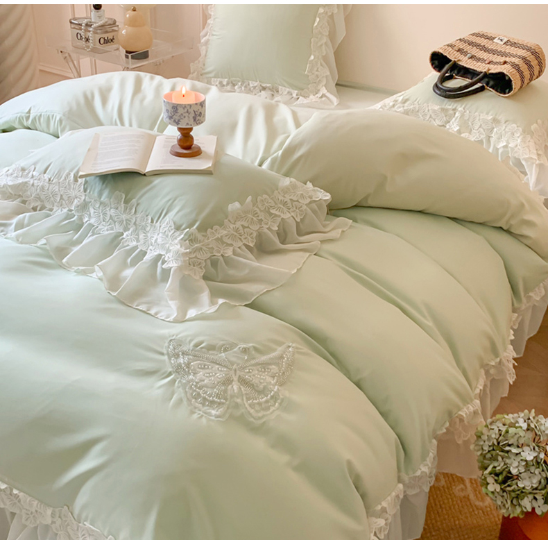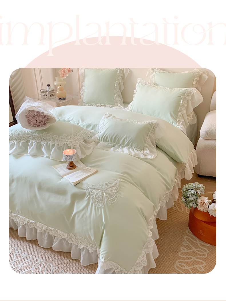 (总)吾欢心 2025新款糯小棉立体蝴蝶花边四件套-蝶恋花系列,蝶恋花白,蝶恋花粉,蝶恋花黄,蝶恋花咖,蝶恋花蓝,蝶恋花绿,蝶恋花紫