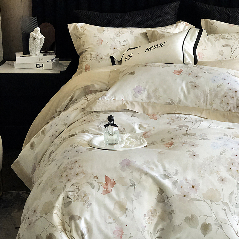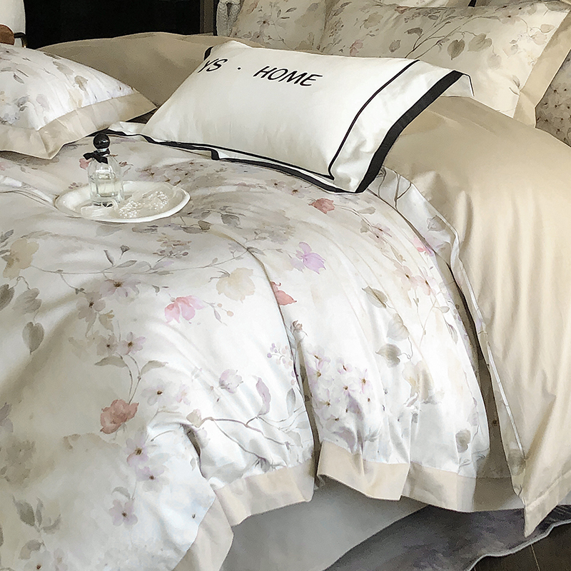 (总)薏思家纺 2025新款全棉100支数码印花生态磨毛轻奢款四件套-珍珠纽扣系列,花弄影-青,花弄影-玉,花弄影-紫,紫纱春日