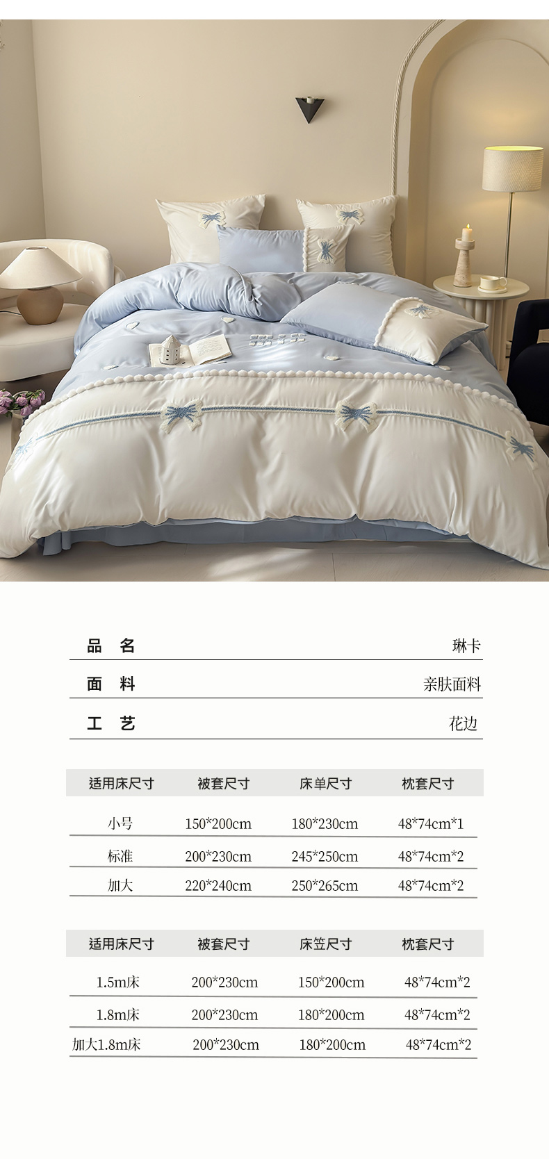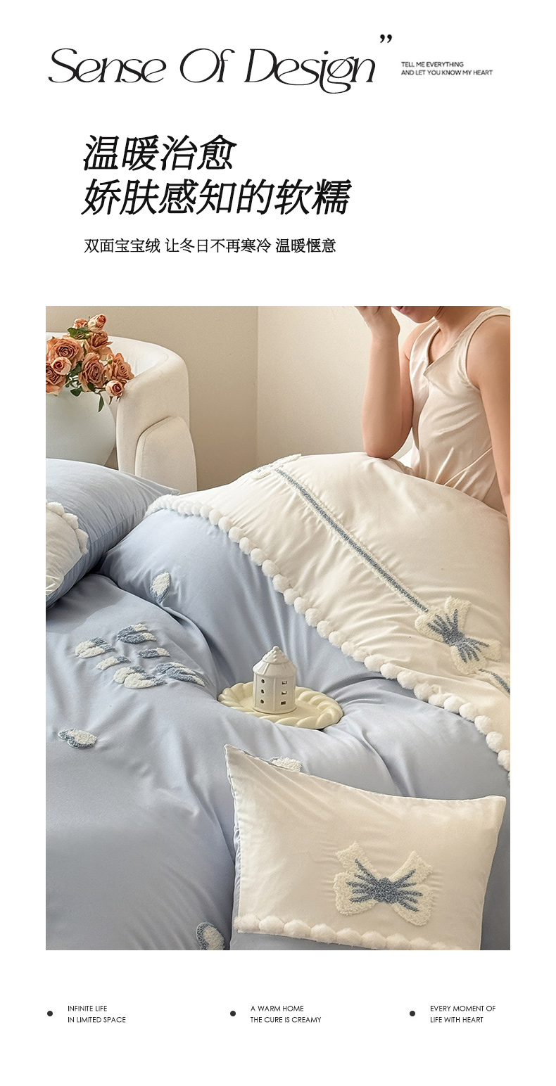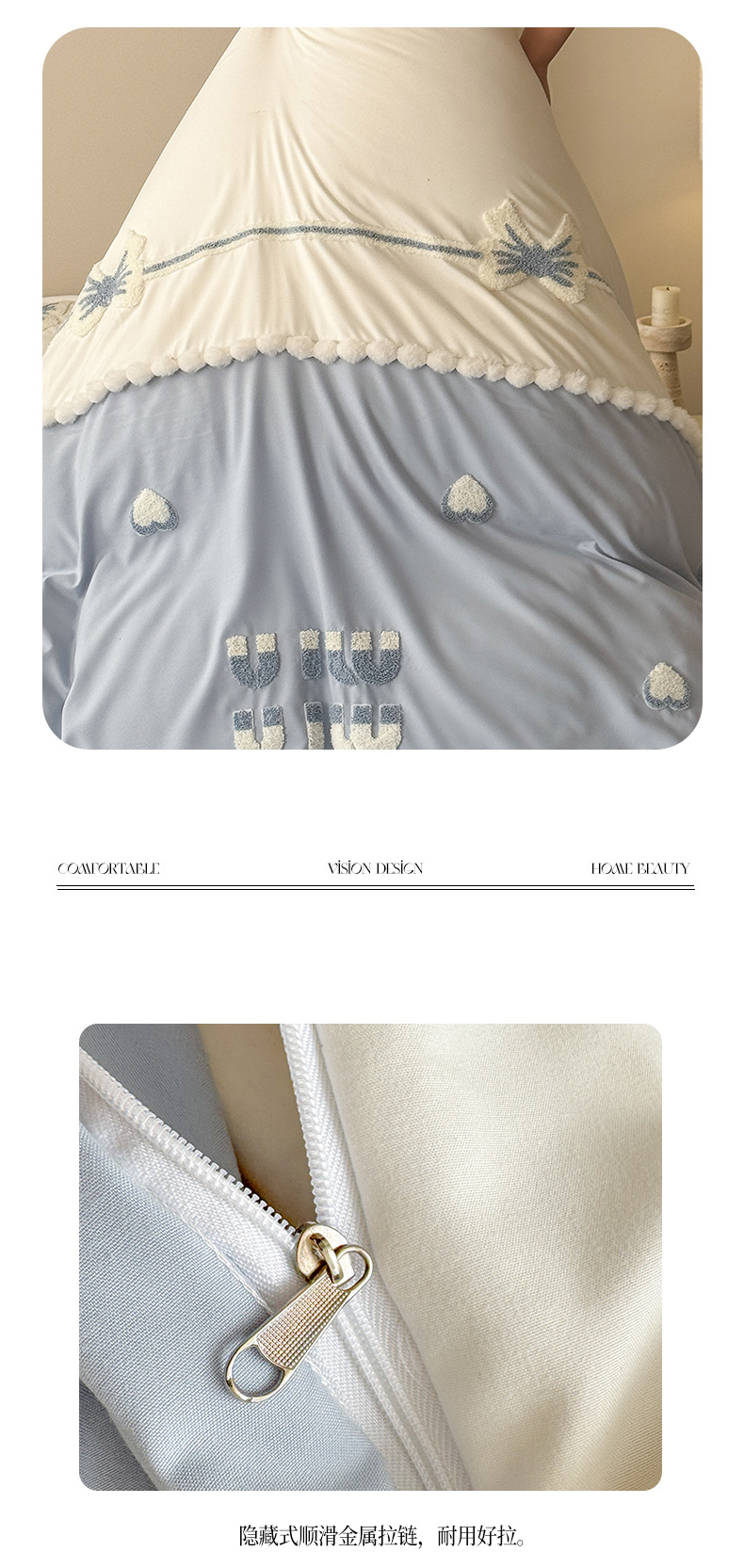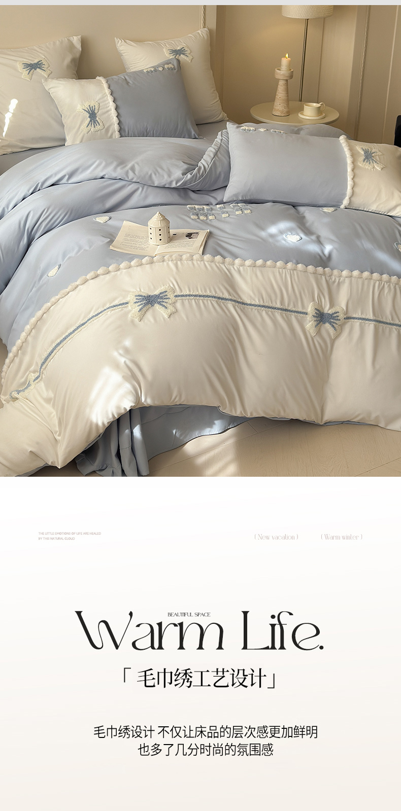 当前位置: 91家纺网 > 商品网购 > 床品套件 > 四件套 > 毛巾绣四件套 > 豪美鑫2025新款柔肤棉毛巾绣公主风爱恋四件套系列 爱恋-天空蓝