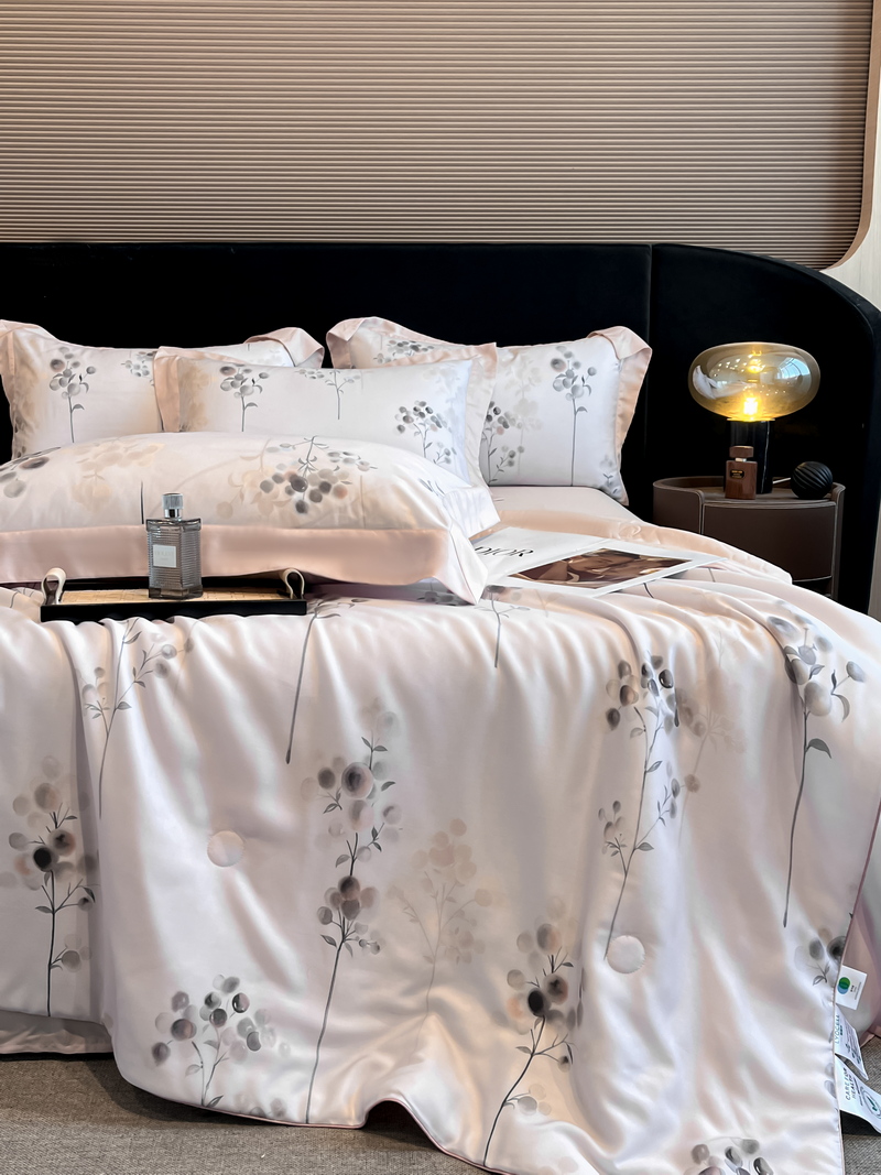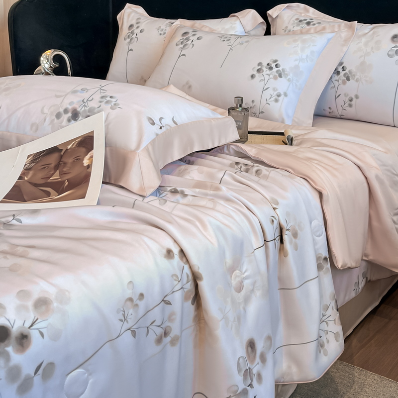 当前位置: 91家纺网 > 商品网购 > 床品套件 > 四件套 > 其它四件套 > 2025春夏新款简奢款嵌绳莱赛尔数码印花夏被四件套单夏被床笠床单款 浮光落影