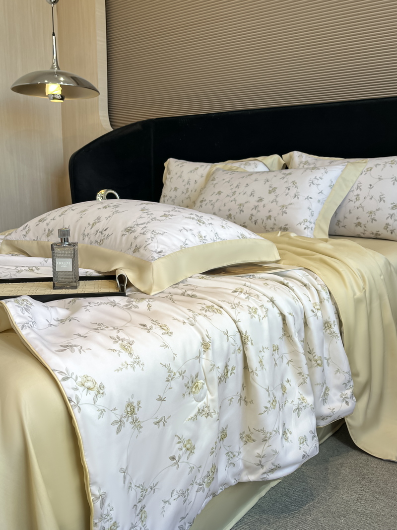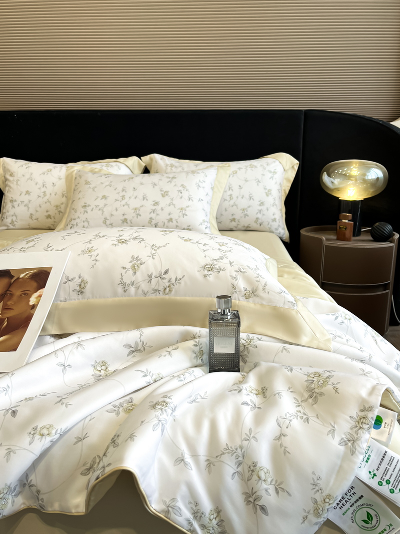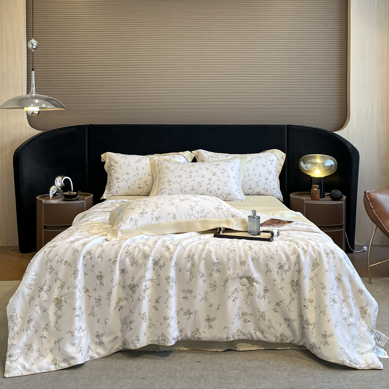 当前位置: 91家纺网 > 商品网购 > 床品套件 > 四件套 > 其它四件套 > 2025春夏新款简奢款嵌绳莱赛尔数码印花夏被四件套单夏被床笠床单款 云芷