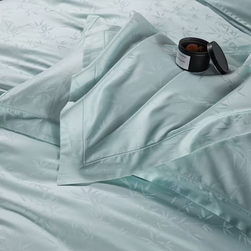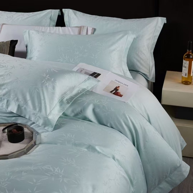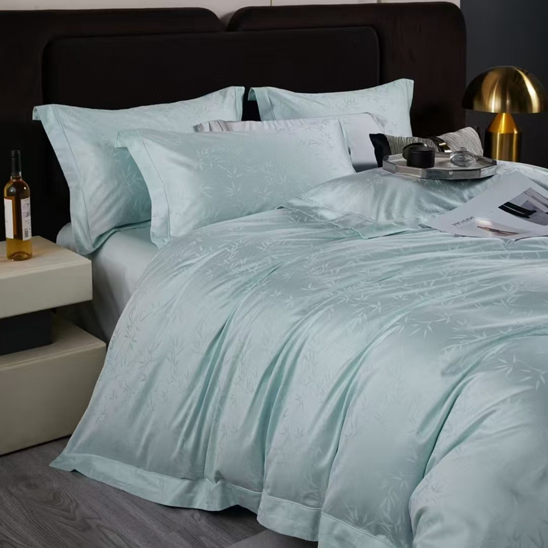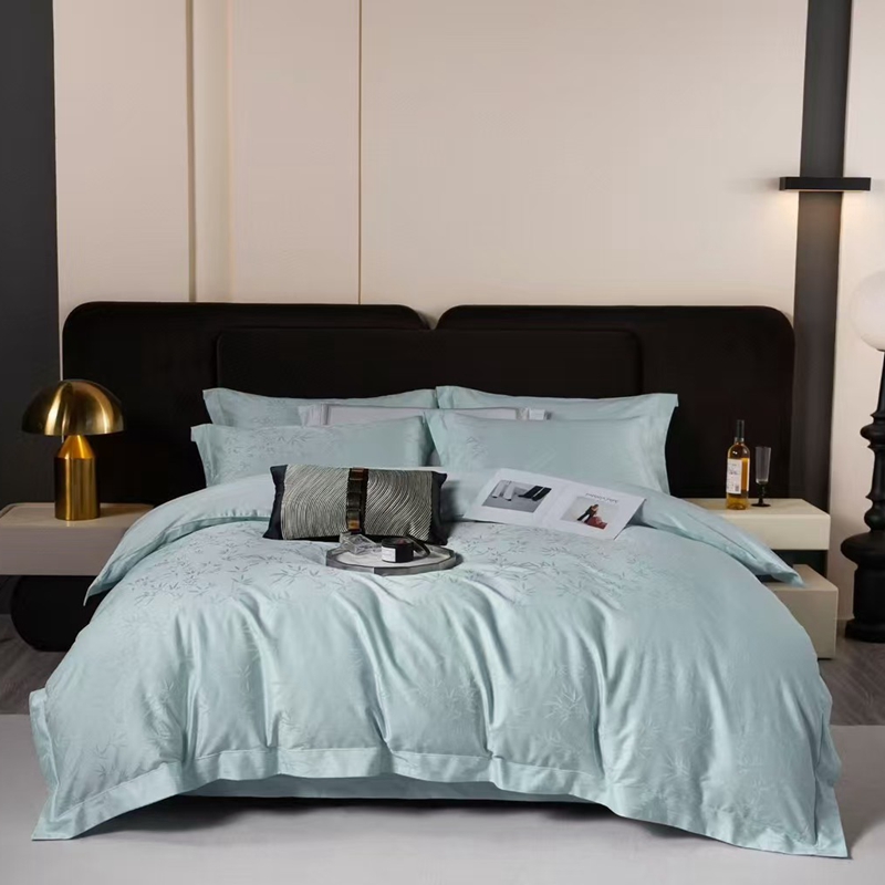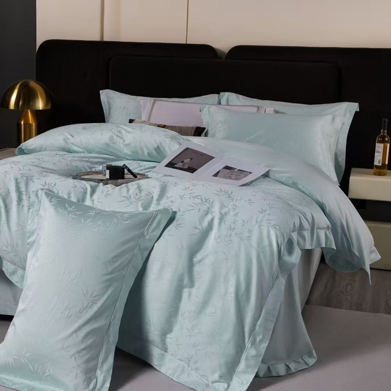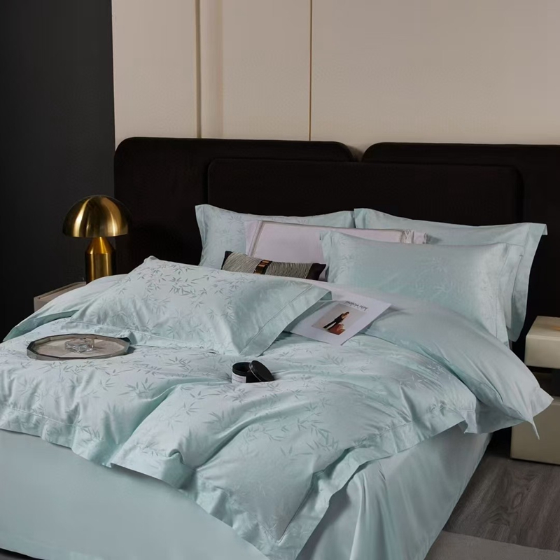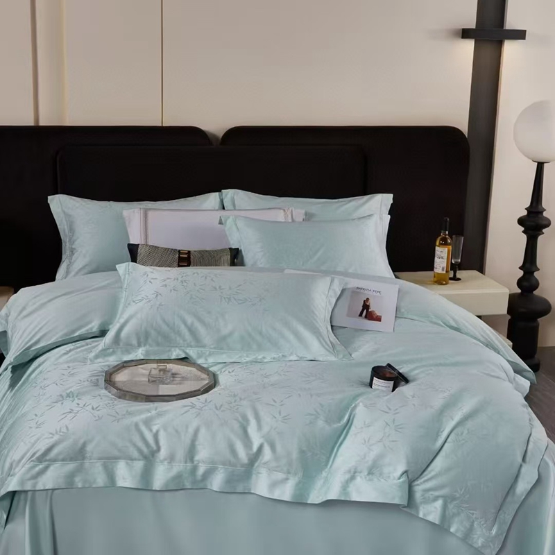 商品名称:玖琳家纺 2025新款100s提花高支高密新疆长绒棉四件套 空山竹语 云水蓝