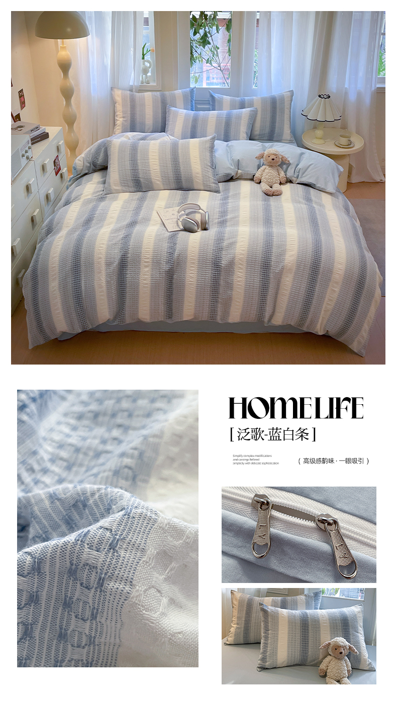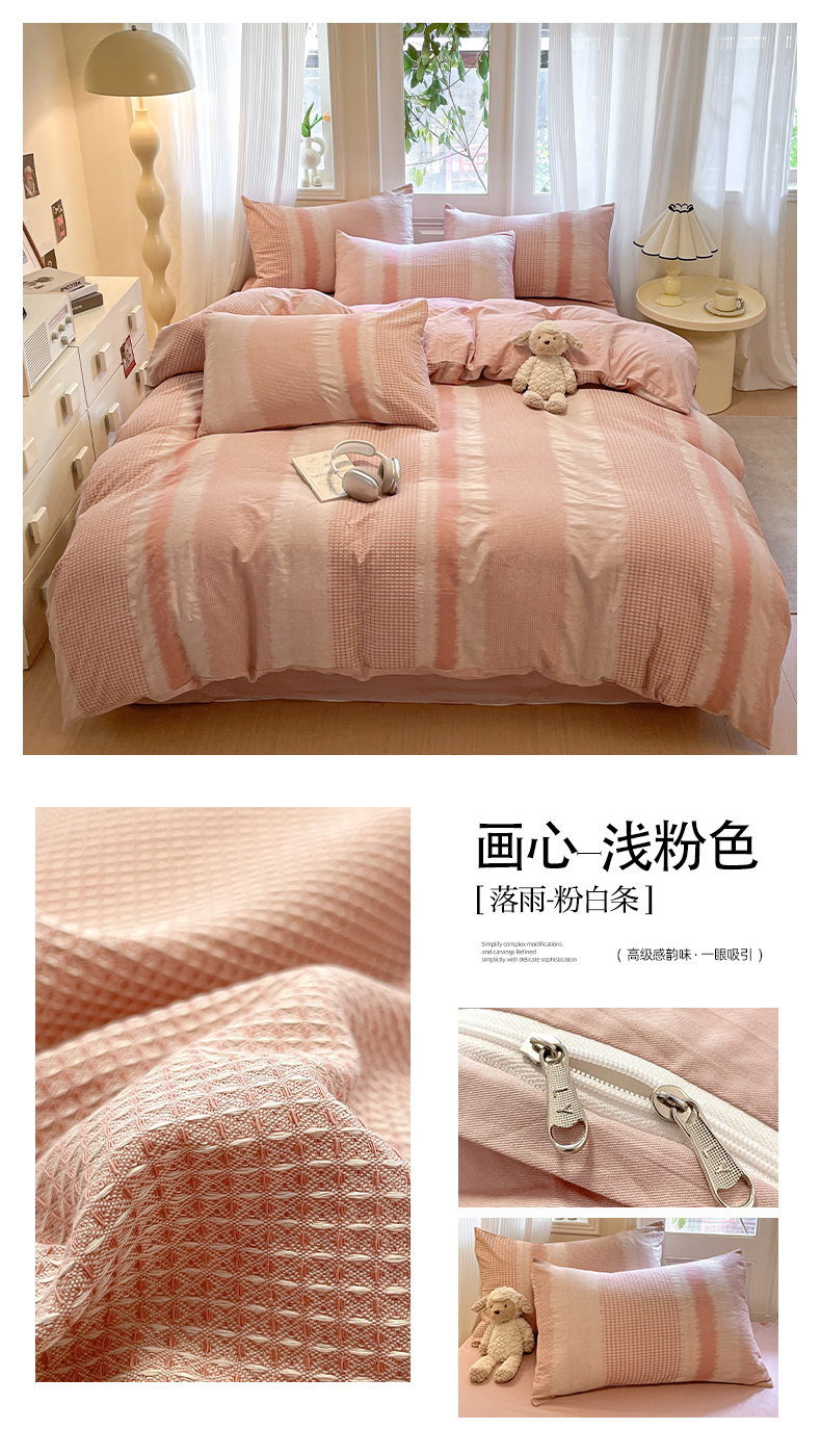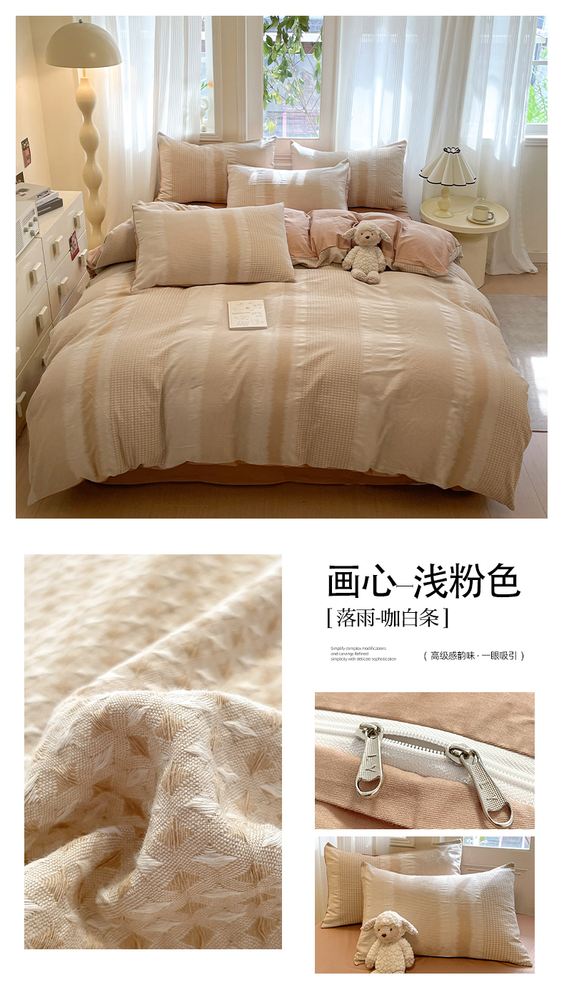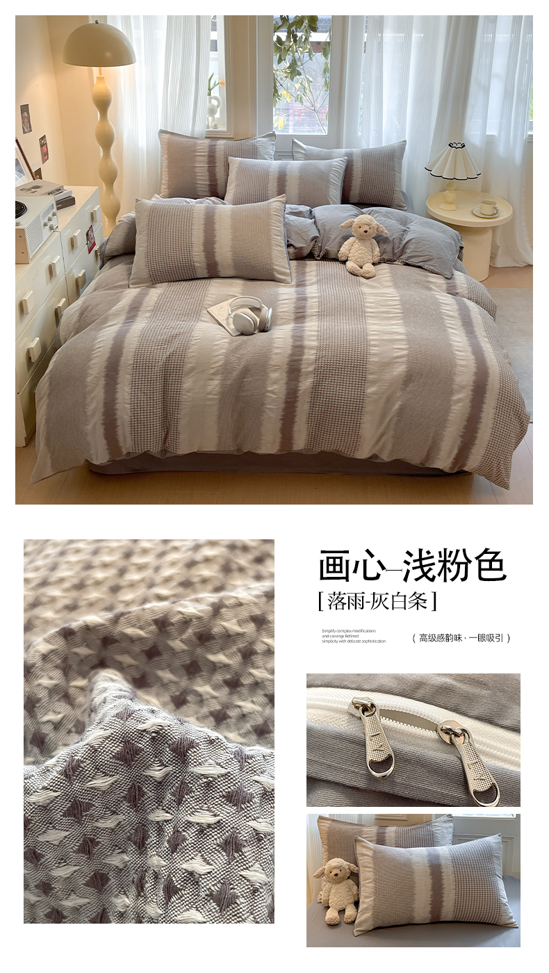 (总)莱茵家居 2025新款全棉纯棉皱皱纱条纹四件套-杼影,杼影-咖纸蓝,杼影-冷雾蓝,杼影-麦浪紫,杼影-绵云咖,杼影-奶泡粉,杼影-暖果黄,杼影-午茶绿,杼影-雨巷灰