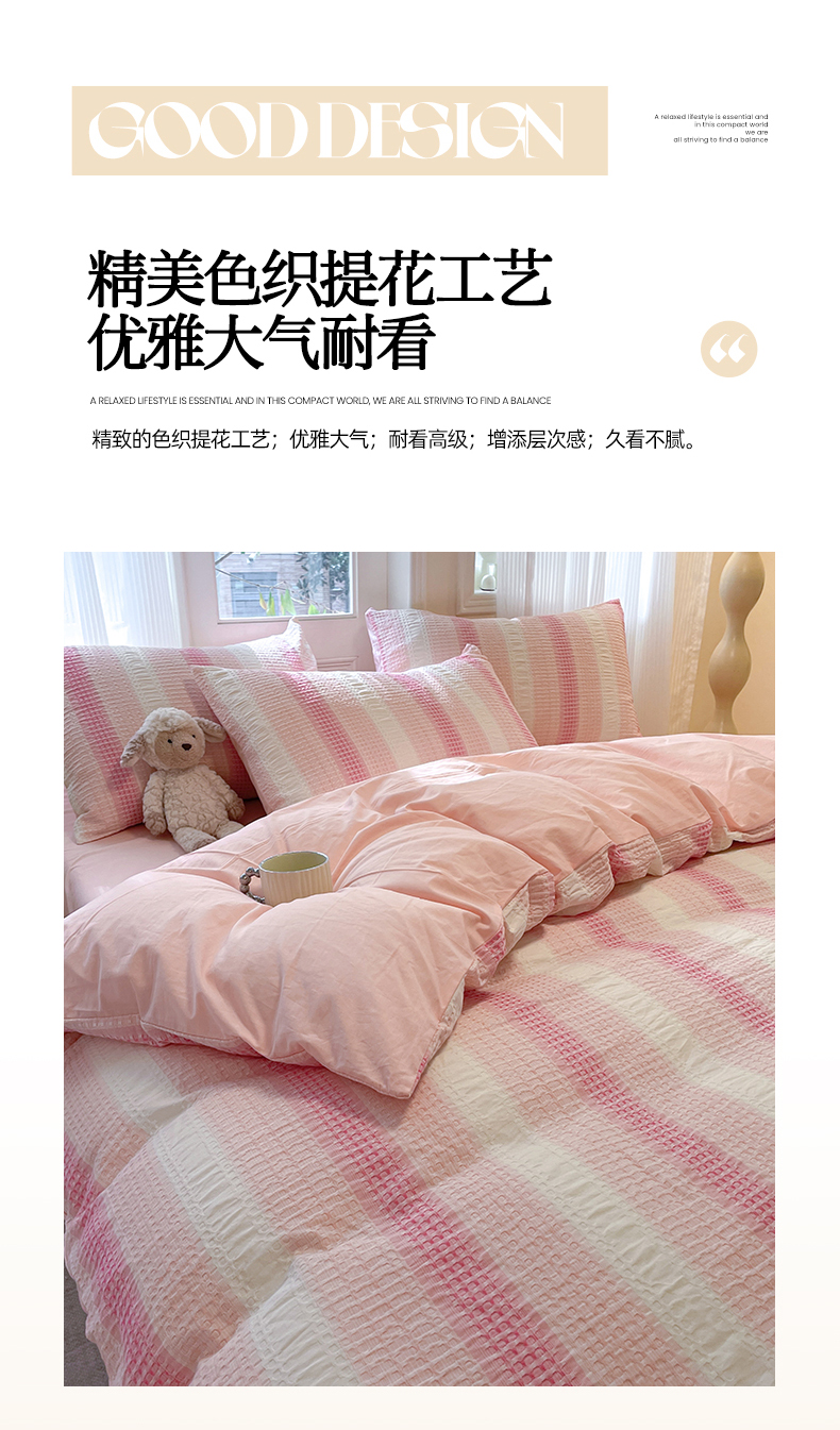 (总)莱茵家居 2025春夏新款A类色织华夫格提花全棉四件套