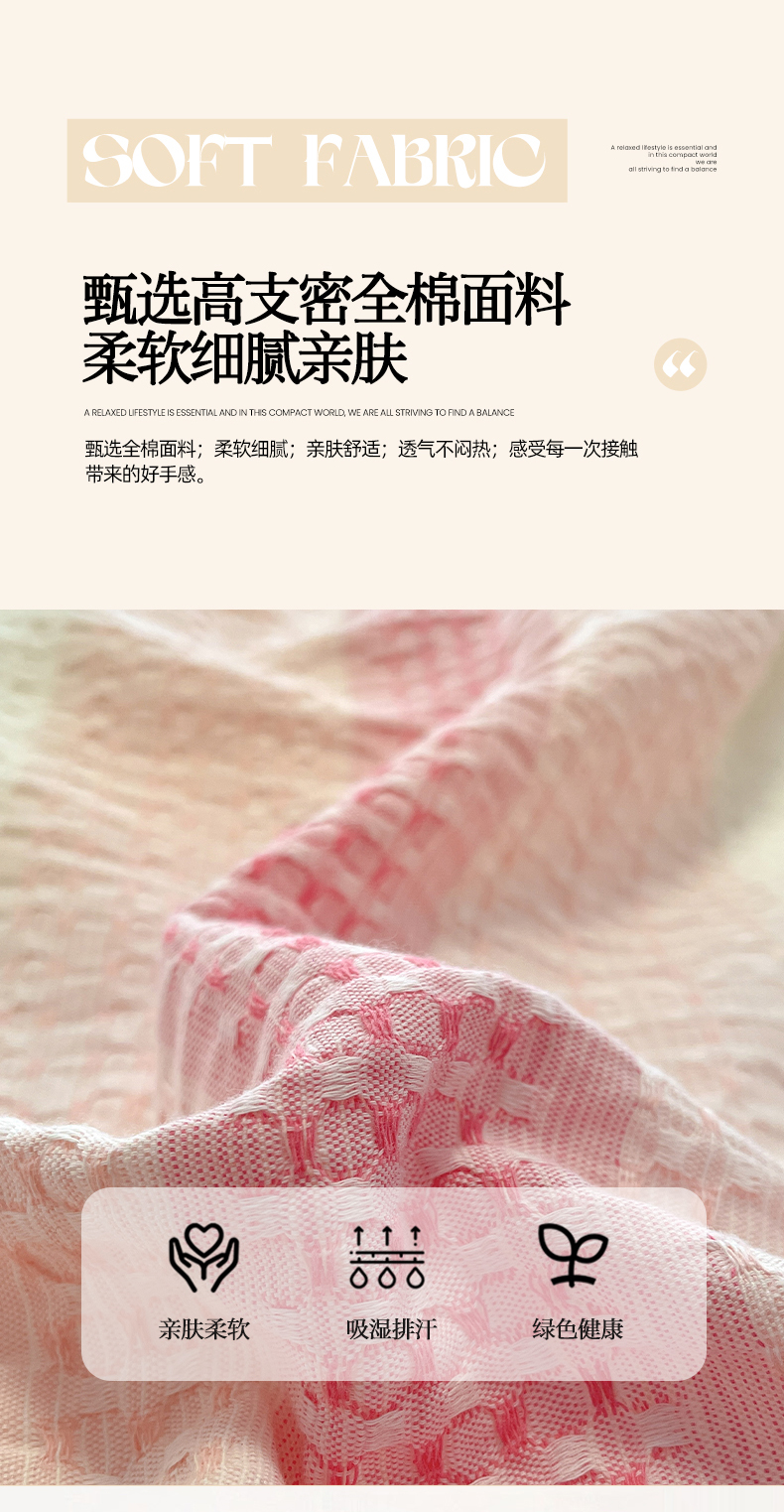 商品名称:(总)莱茵家居 2025春夏新款A类色织华夫格提花全棉四件套