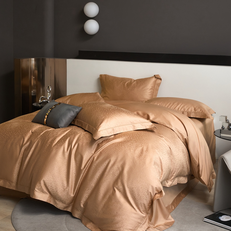 商品名称:淳绵家居 2025新款50*50S长绒棉贡缎提花手工立体埋绳工艺四件套(礼盒包装)星耀(香槟色)