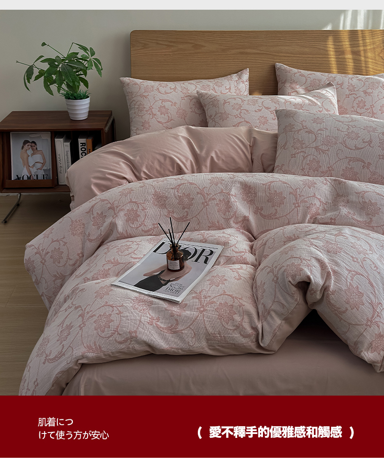 莱茵家居 2025春夏新款A类三层纱色织提花全棉四件套 花蔓粉