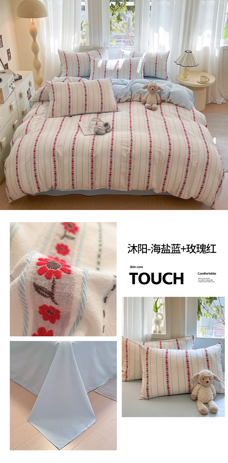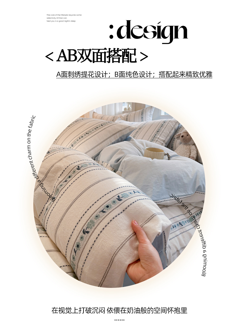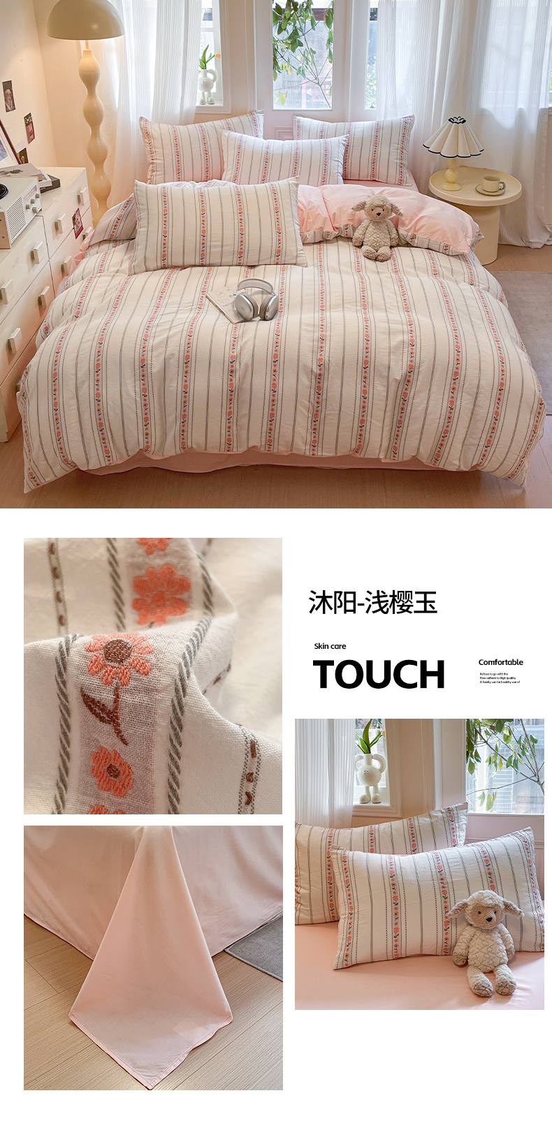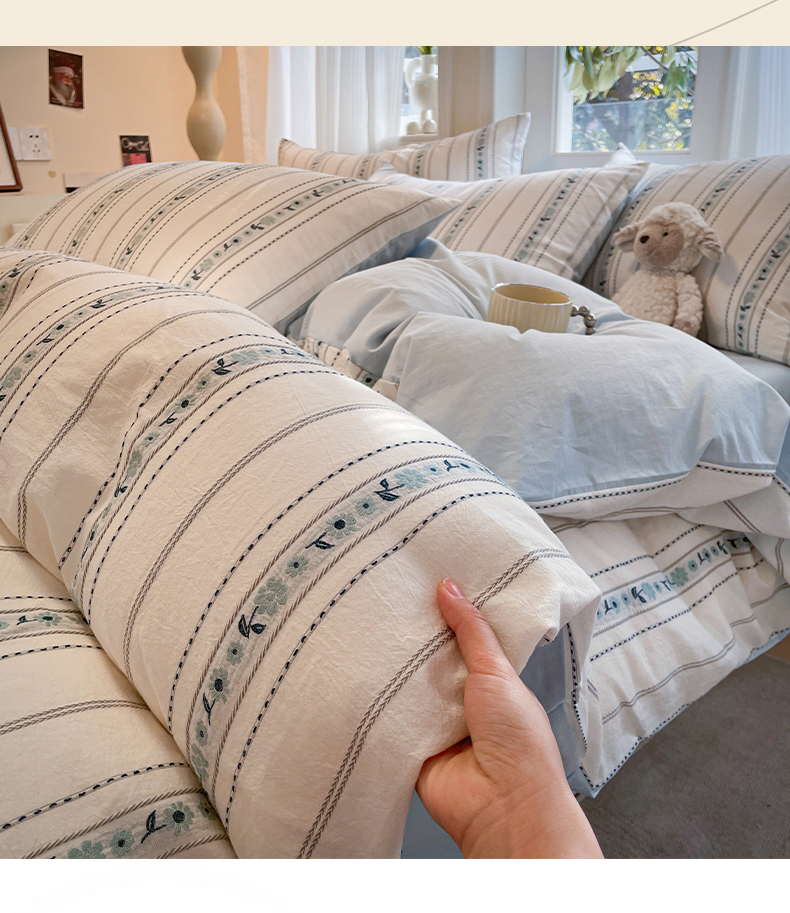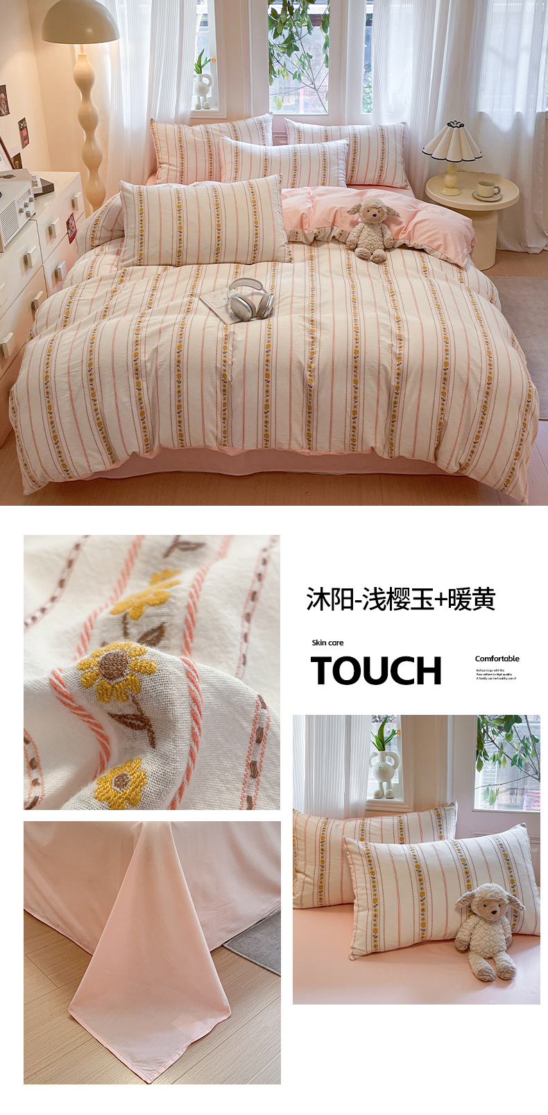 当前位置: 91家纺网 > 商品网购 > 床品套件 > 四件套 > 色织四件套 > (总)莱茵家居 2025春夏新款A类田园风小碎花色织钩花全棉四件套-沐阳系列