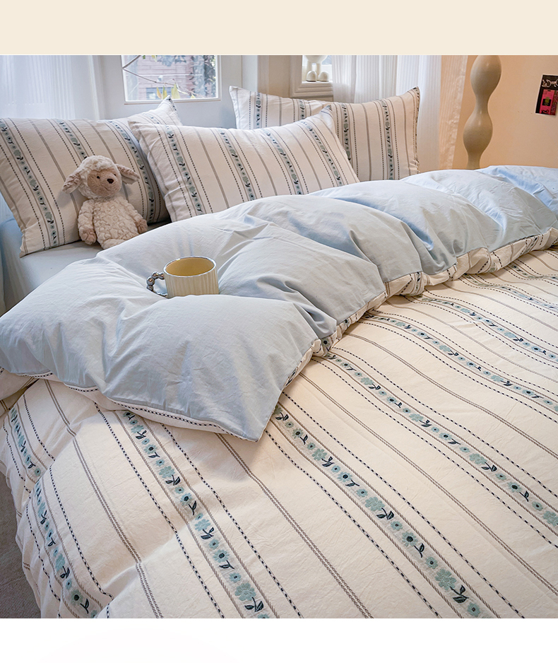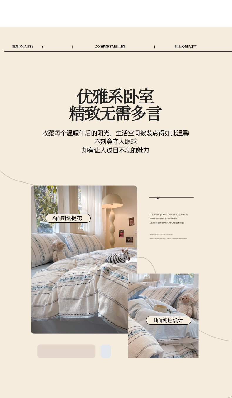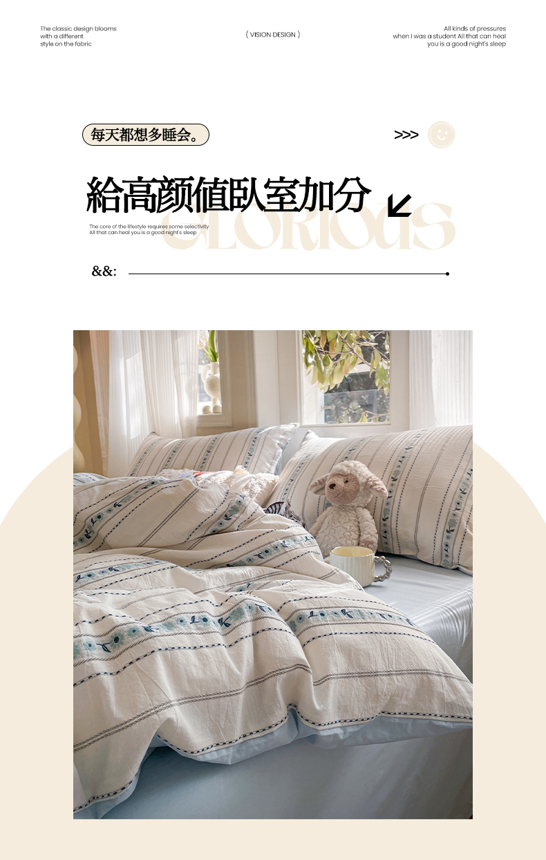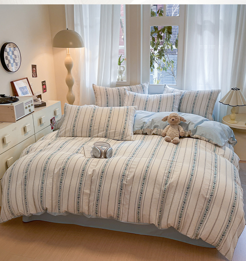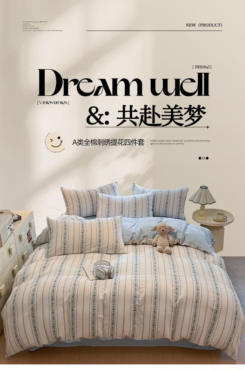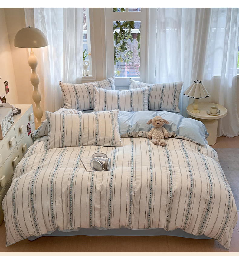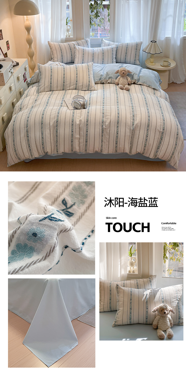 当前位置: 91家纺网 > 商品网购 > 床品套件 > 四件套 > 色织四件套 > (总)莱茵家居 2025春夏新款A类田园风小碎花色织钩花全棉四件套-沐阳系列