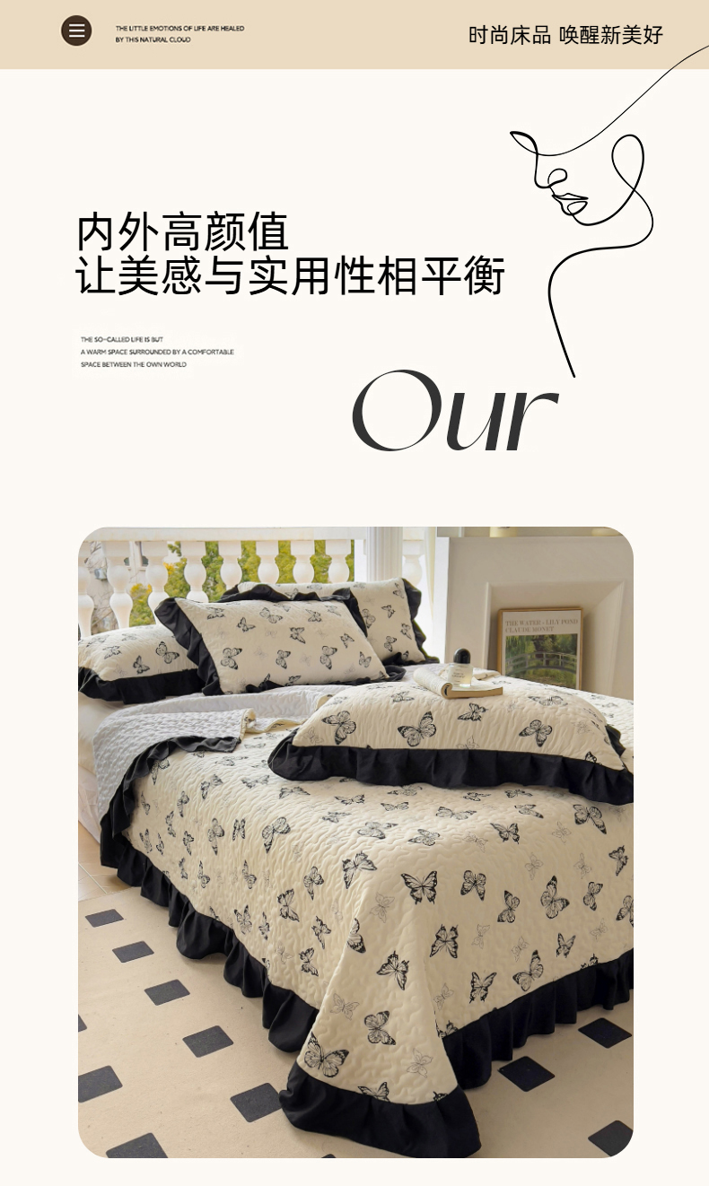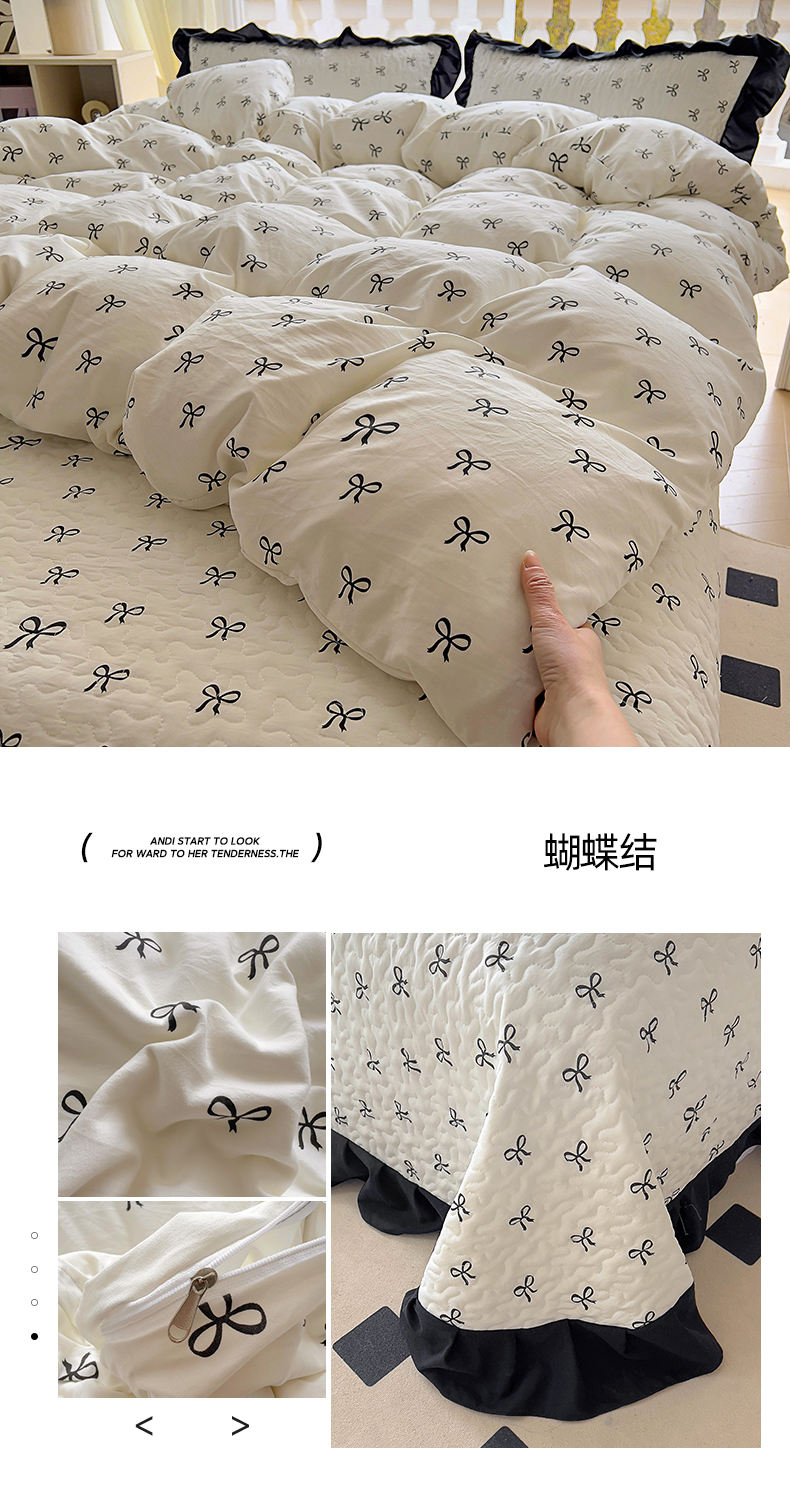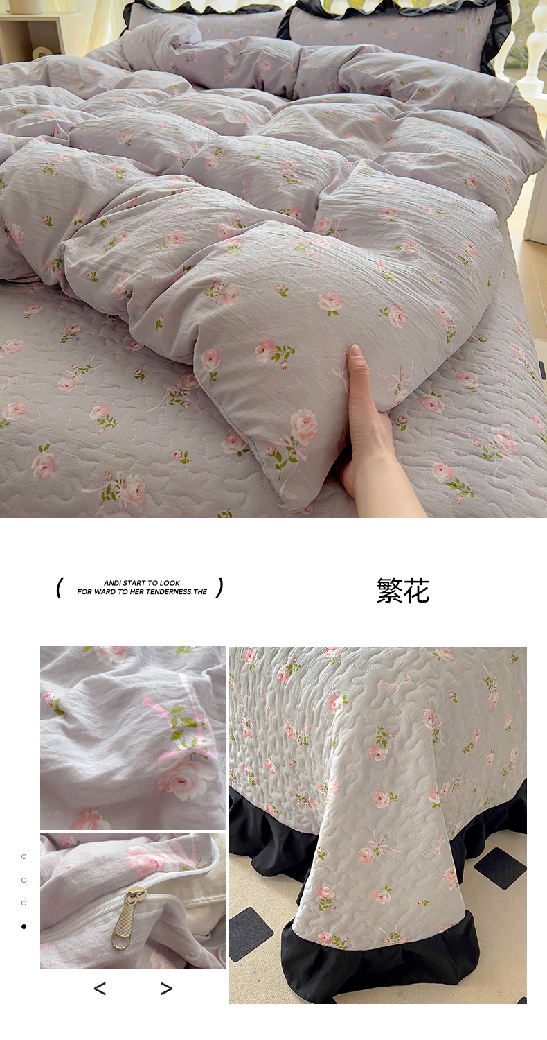 当前位置: 91家纺网 > 商品网购 > 床品套件 > 四件套 > 水洗棉四件套 > 韩秀家纺 2025新款四季跑量款花边夹棉加厚水洗棉泡泡棉糯感印花韩版床盖床盖四件套法式赫本风 小樱桃