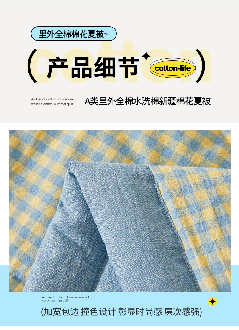 商品名称:(总) 2026新款A类里外全棉夏凉被100%新疆棉纯棉全棉填充无印格子款空调被全棉夏被