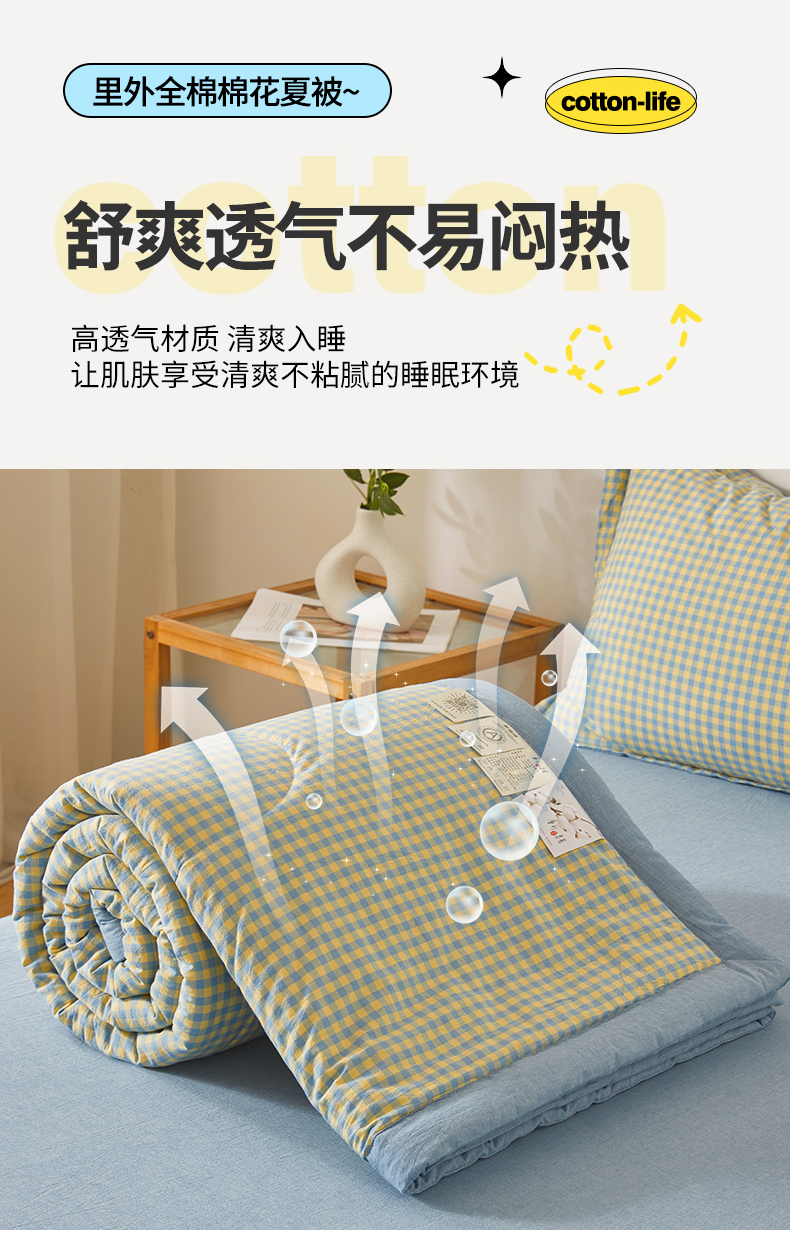 (总) 2026新款A类里外全棉夏凉被100%新疆棉纯棉全棉填充无印格子款空调被全棉夏被