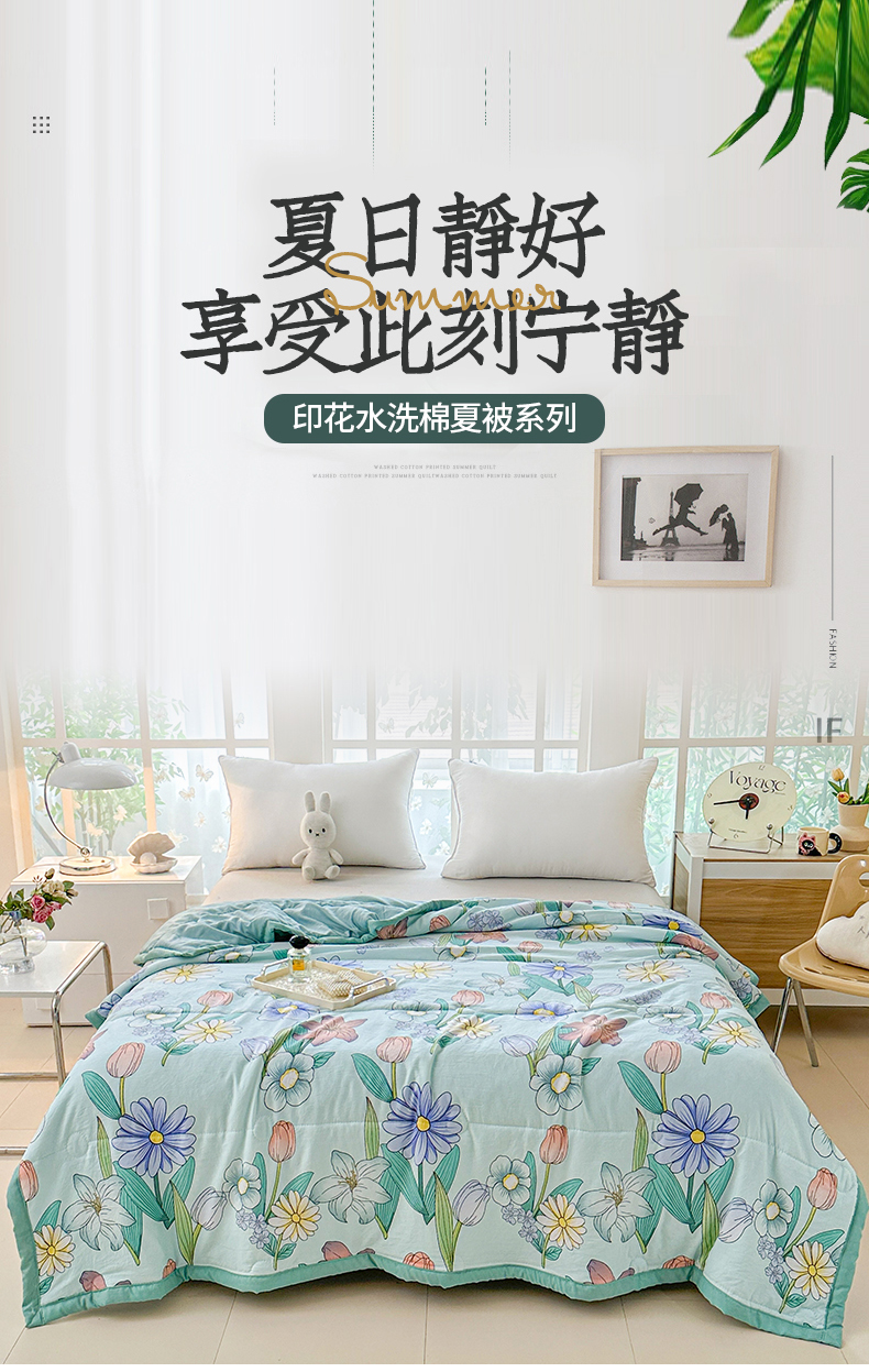 商品名称:(总)好欣怡家纺 2025新款水洗棉夏被空调被被子被芯印花小清新夏凉被直播热款