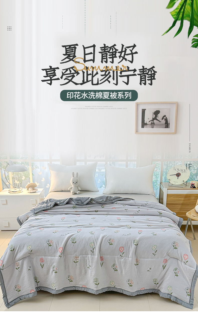 • 91家纺网 家纺一手货源 找家纺 好欣怡家纺 2026新款水洗棉夏被空调被被子被芯印花小清新夏凉被直播热款 水洗棉包边款-小碎花