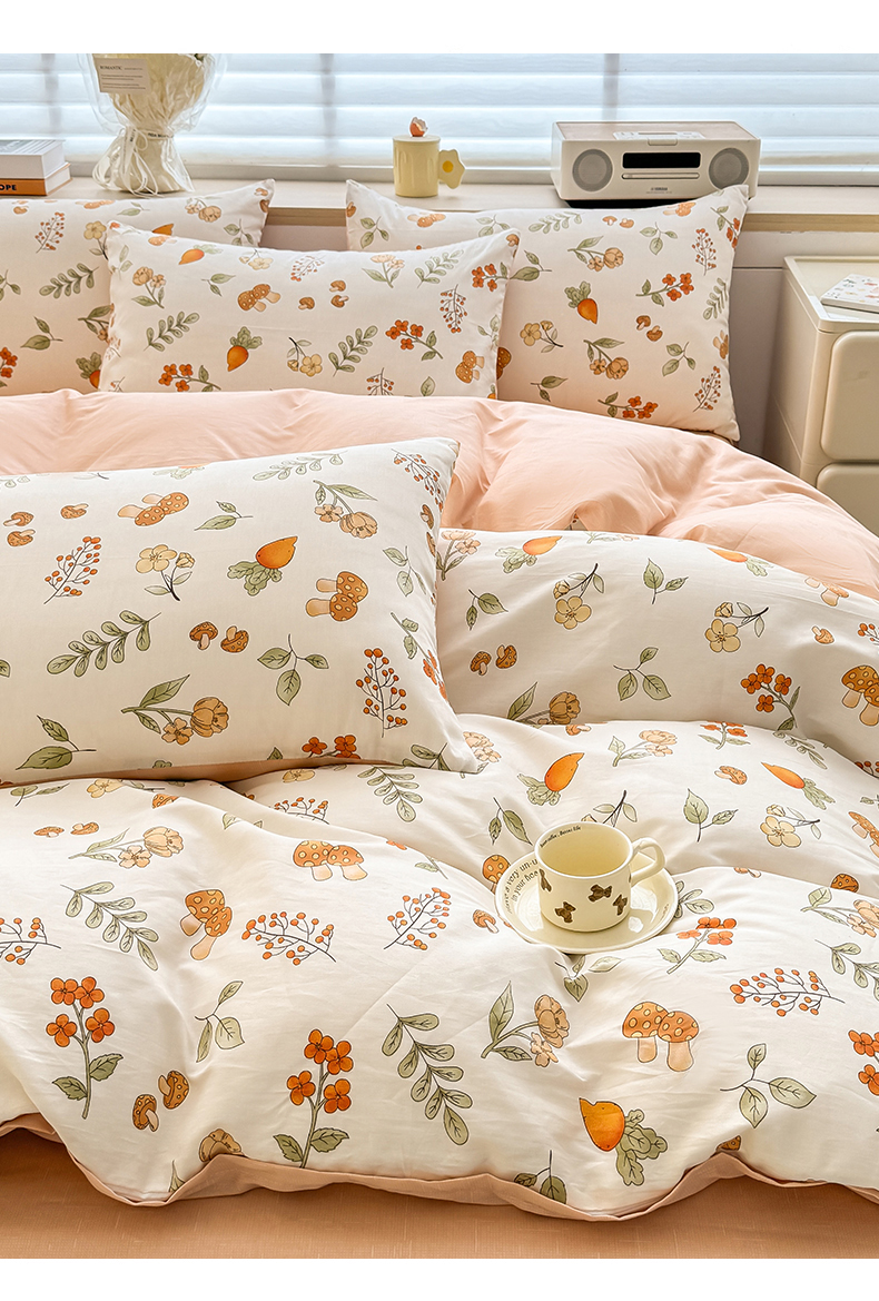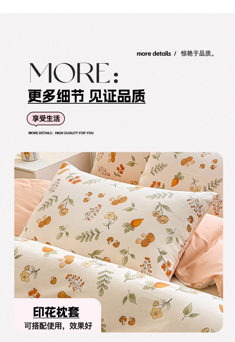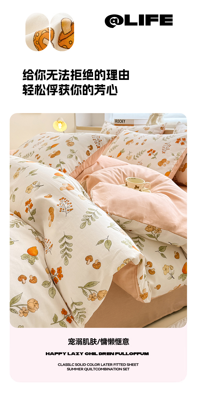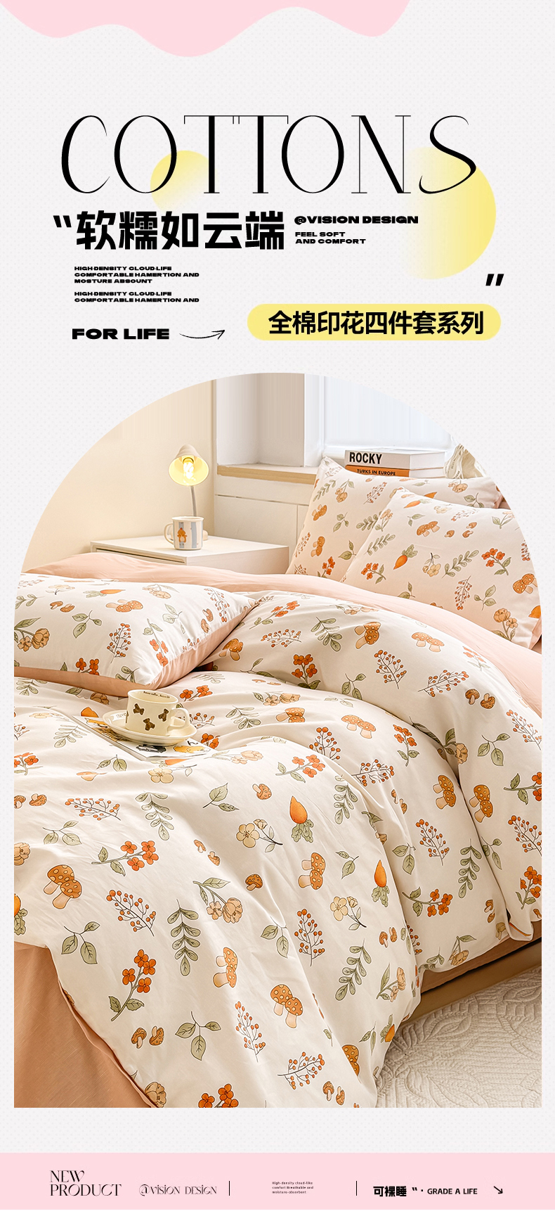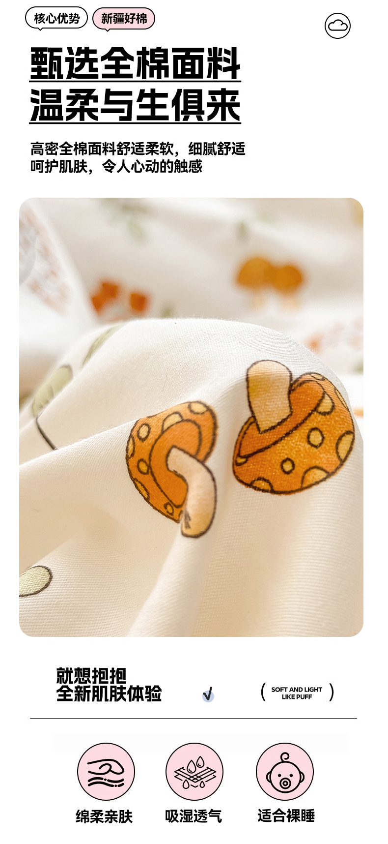 商品名称:KA家纺 2025新款高密全棉印花软糯四件套 蘑菇乐园