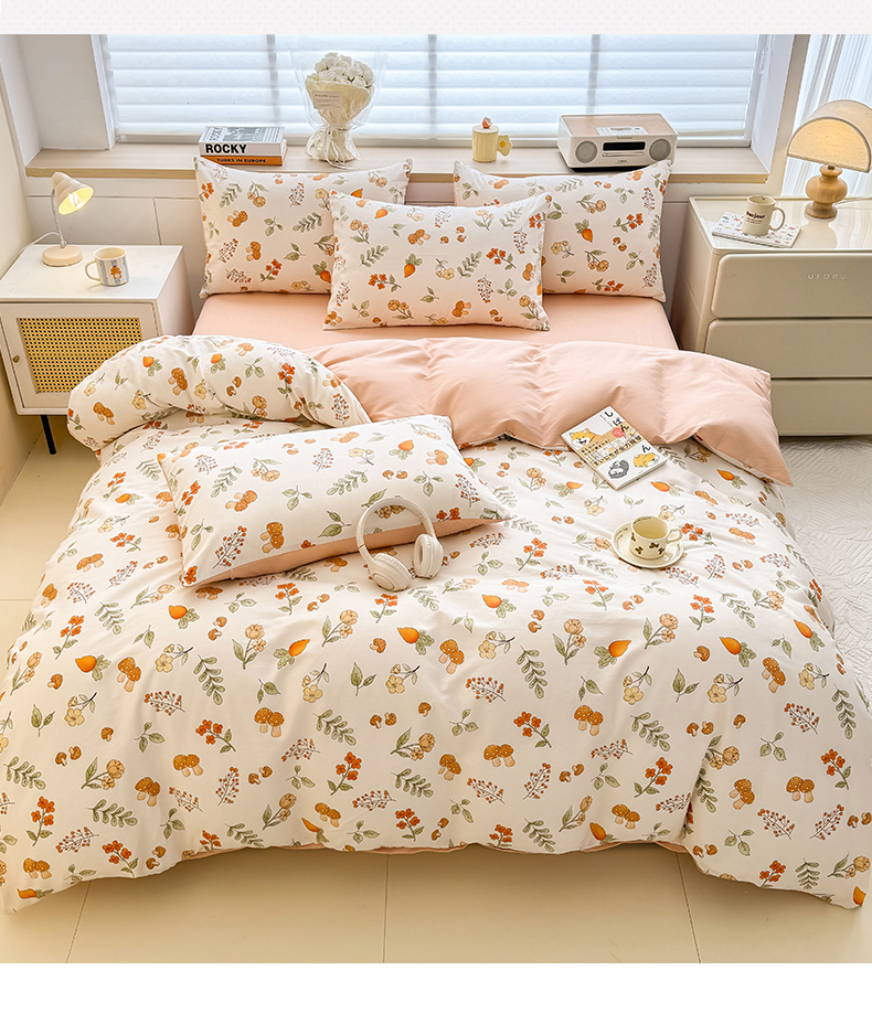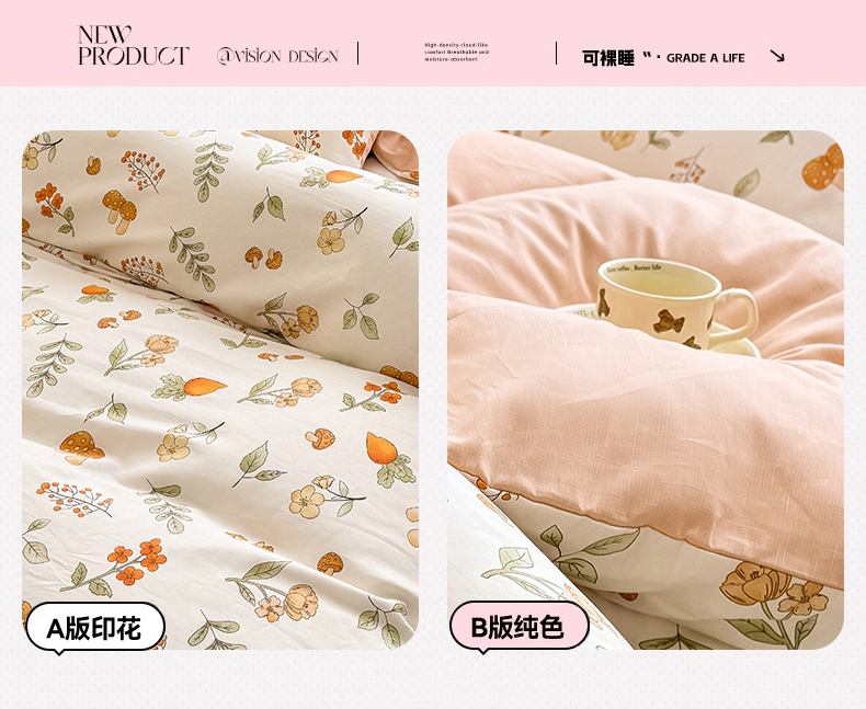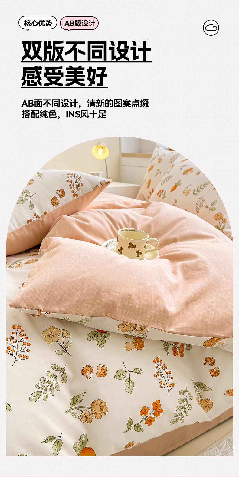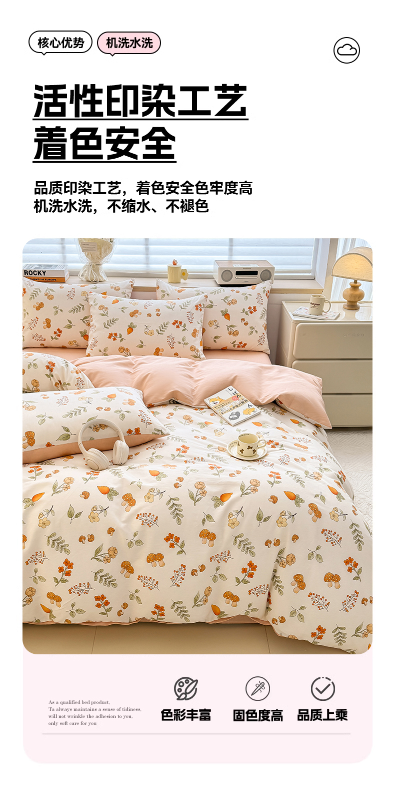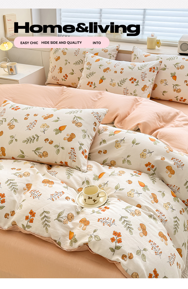 商品名称:KA家纺 2025新款高密全棉印花软糯四件套 蘑菇乐园