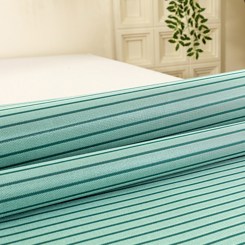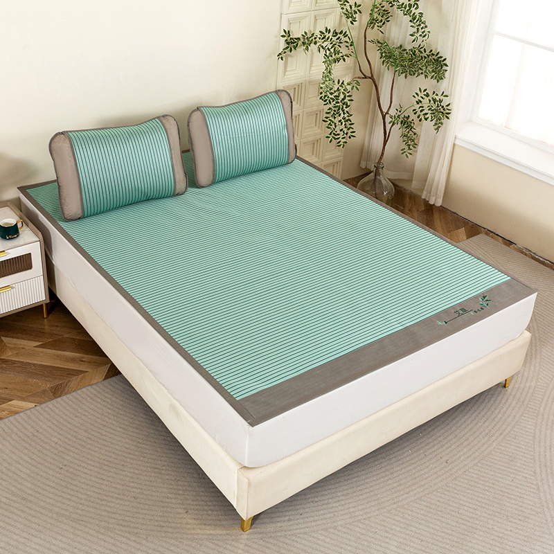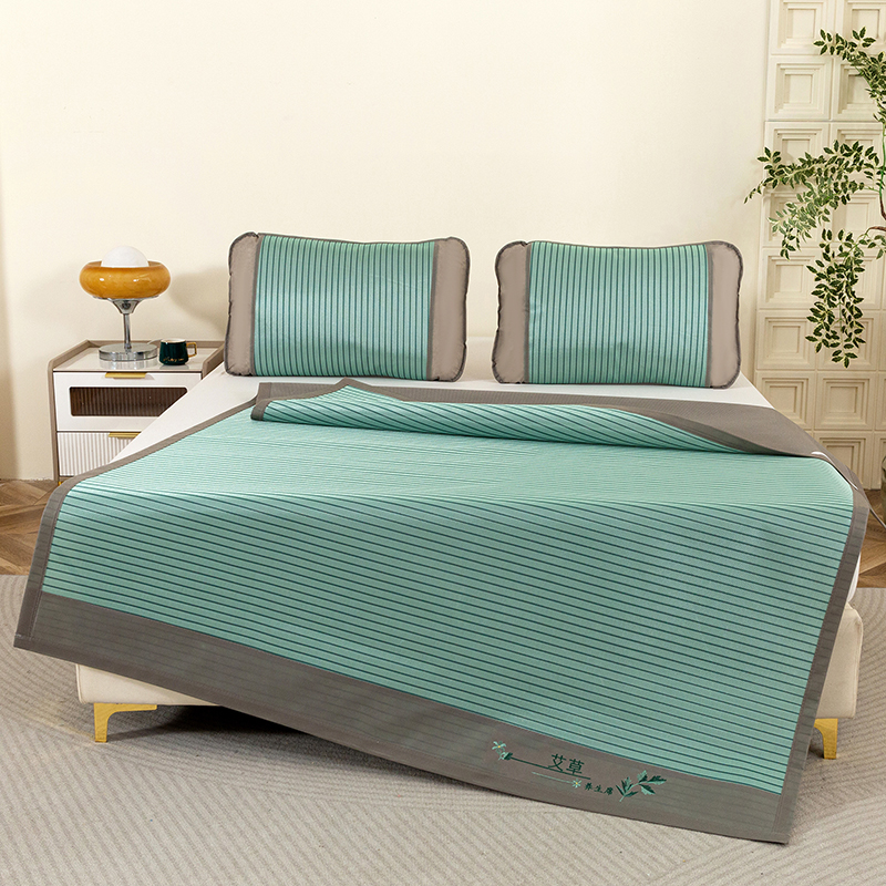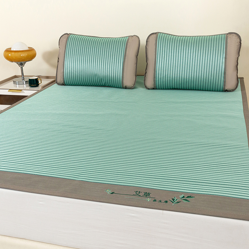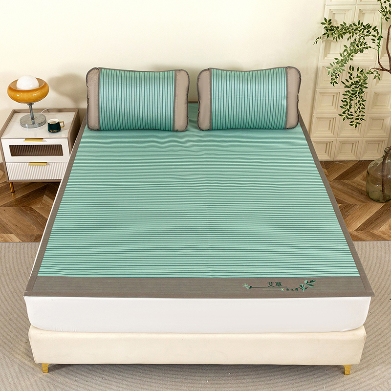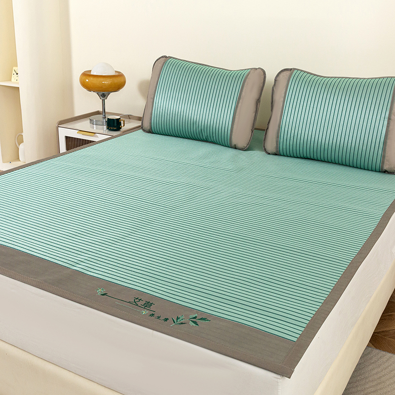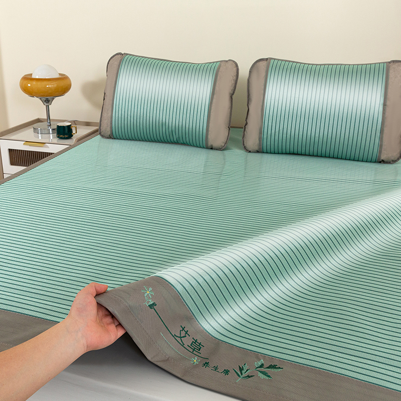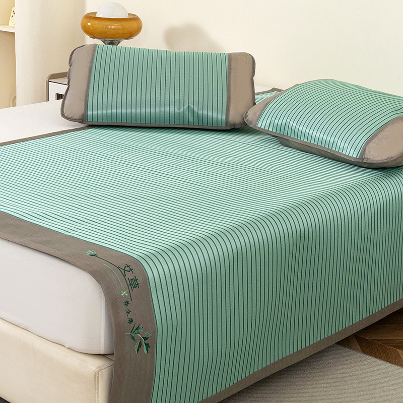 商品名称:丹兰 2025新款碳光冰丝席三件套竹席冰藤席艾草席学生席双人床凉席 碳光条纹 绿