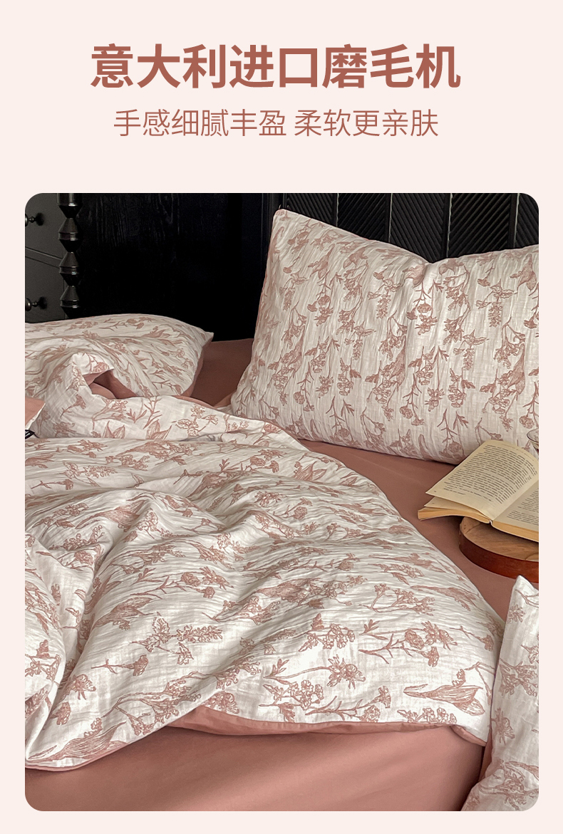 (总)宜代光年 2025新款亚麻大提花贡缎磨毛四件套-小清新风,花瓣雨-浅粉,花丛蝶舞-浅粉,露西亚-米麻,麻吉-浅绿,向日葵-米麻