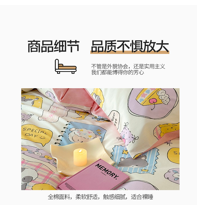 商品名称:典曼家纺 2025新款13372印花小清新四件套 动物城