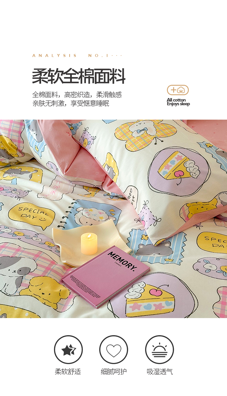 典曼家纺 2025新款13372印花小清新四件套 动物城