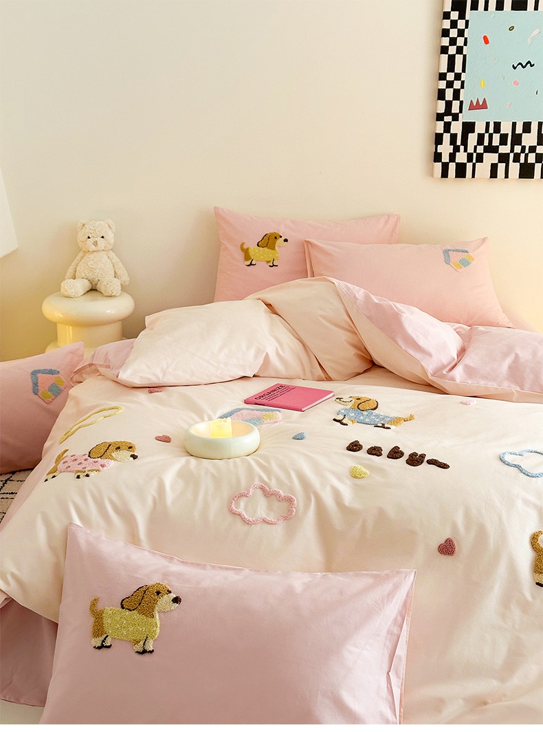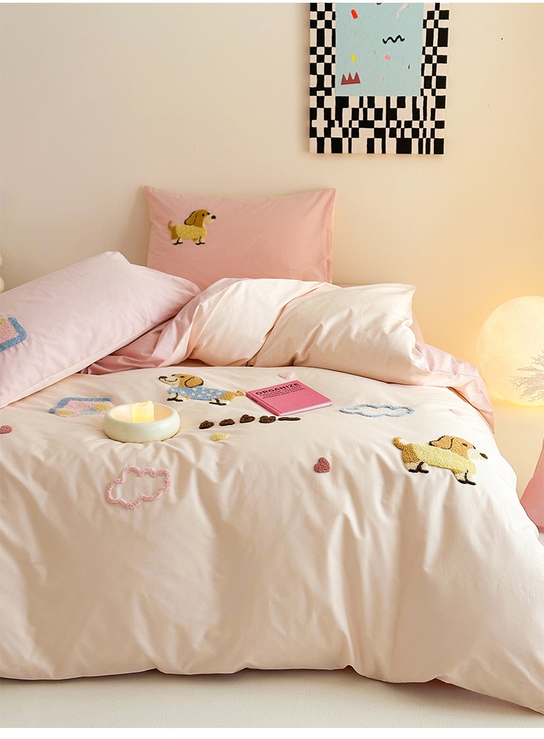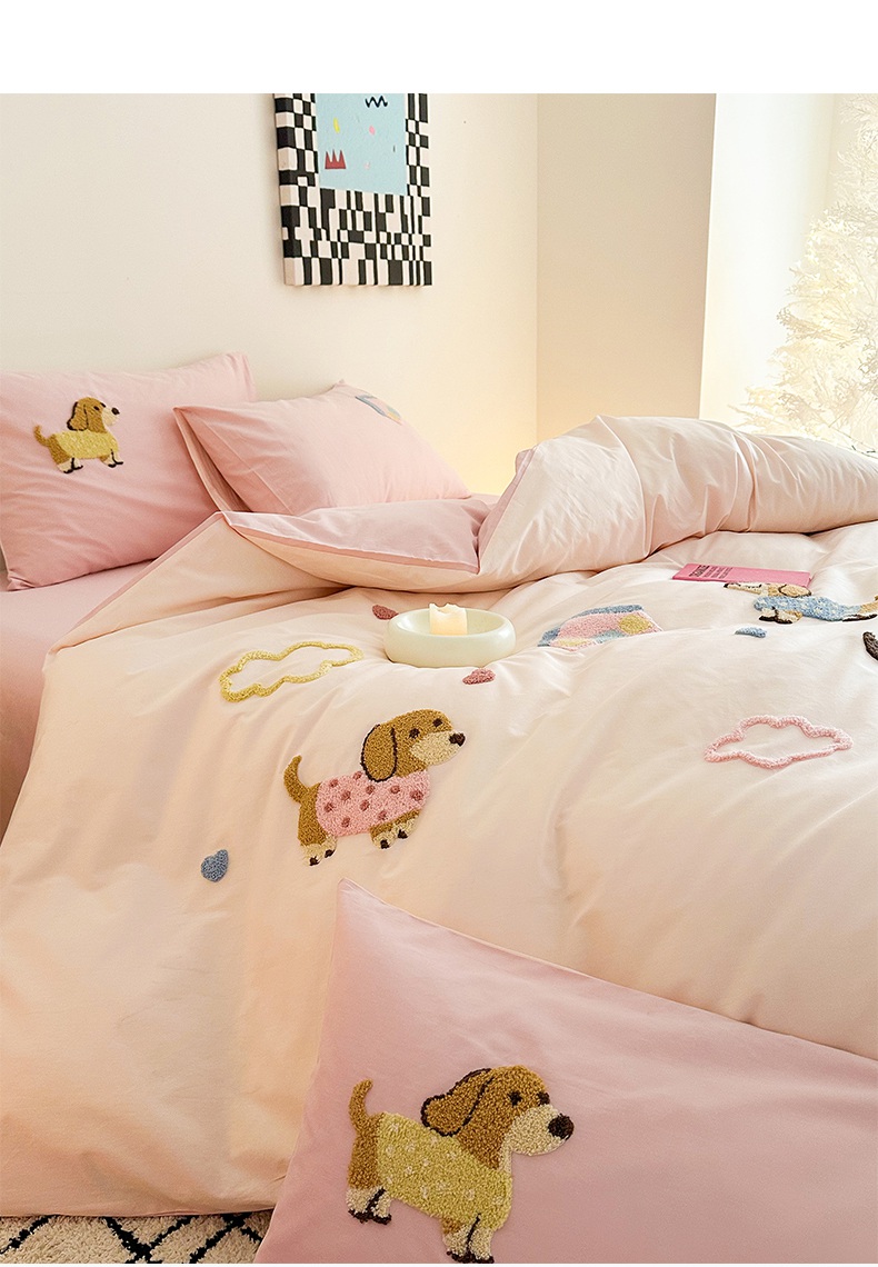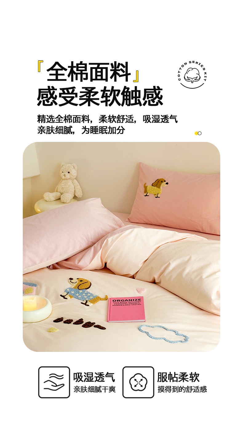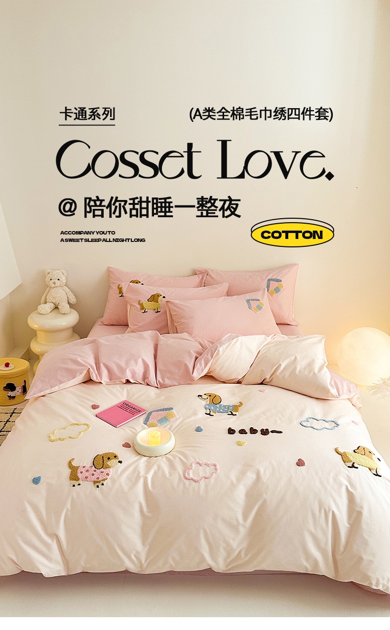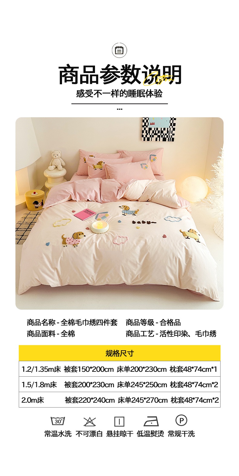当前位置: 91家纺网 > 商品网购 > 床品套件 > 四件套 > 全棉普通四件套 > 懒猫家纺 2025新款高精密40支13374全棉毛巾绣四件套 悠闲小狗
