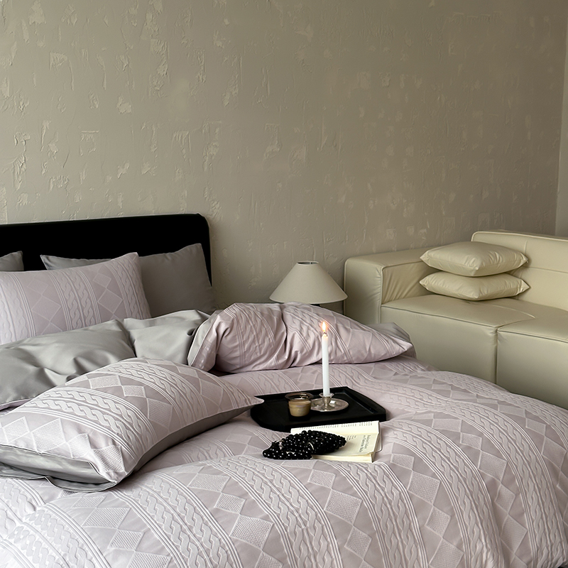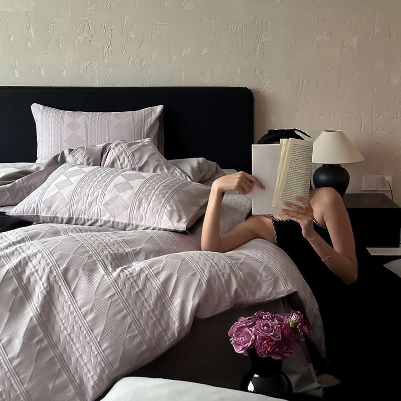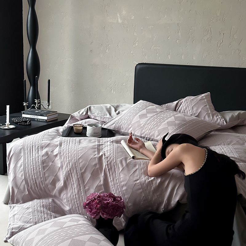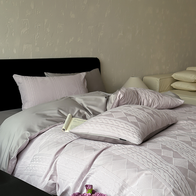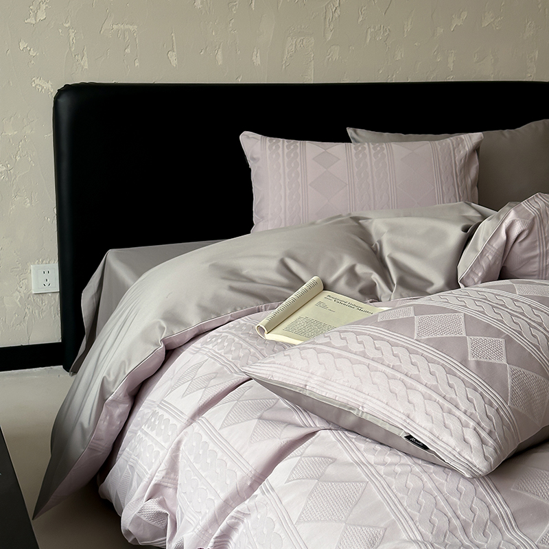 玉宇阁 2025新款100S全棉大提花四件套-安缦春也 迷雾紫灰