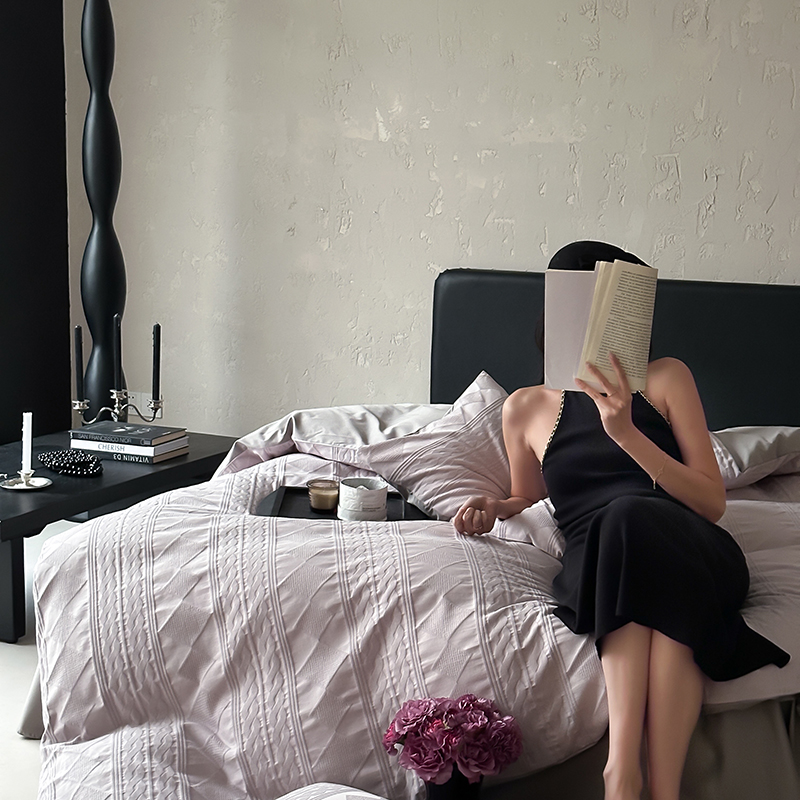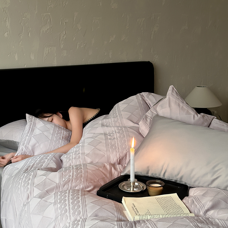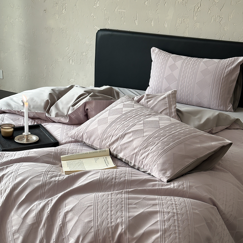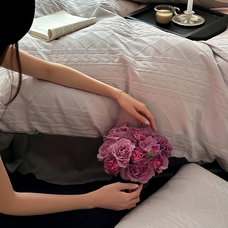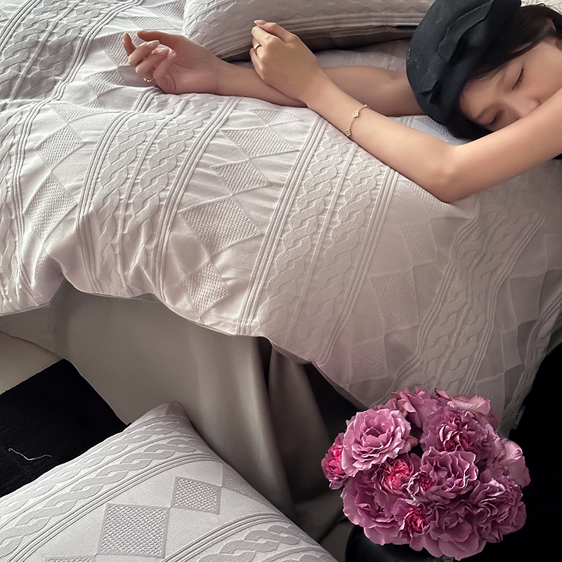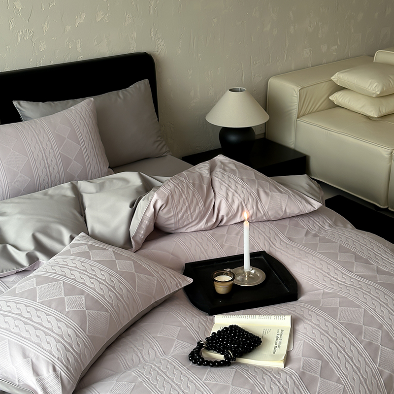 玉宇阁 2025新款100S全棉大提花四件套-安缦春也 迷雾紫灰