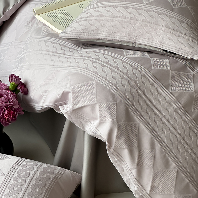 商品名称:玉宇阁 2025新款100S全棉大提花四件套-安缦春也 迷雾紫灰