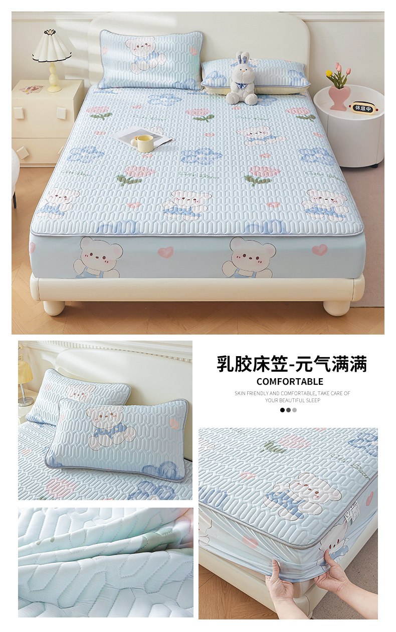 商品名称:雯豆2025夏季新品0.4乳胶凉席床笠款三件套凉感丝印花纯色床罩 乳胶床笠-元气满满