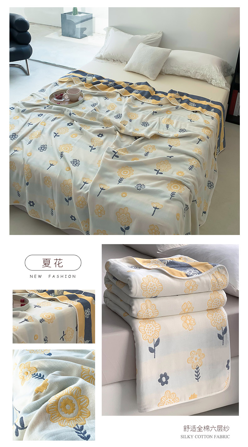 爱港家纺 2025新款全棉A类六层纱布毛巾被 夏被 蓝云