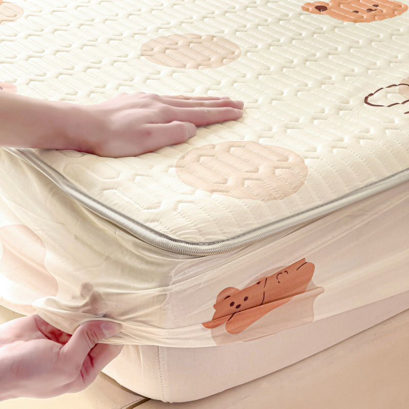 (总)富馨莱 2025新款牛奶绒夹棉床垫床盖支持一件定制,飞行太空,格子熊猫,孔雀蓝,恐龙伙伴,抹茶绿,七彩草莓,轻奢白,轻奢灰,小精灵,小柯基,樱桃兔,脏脏熊,组合图