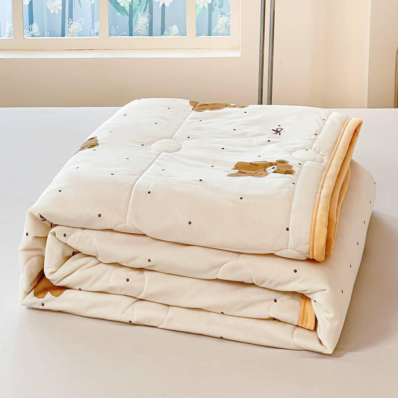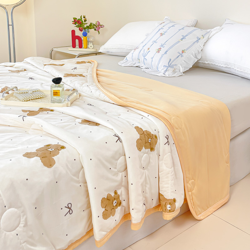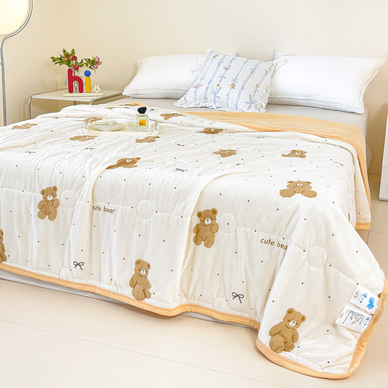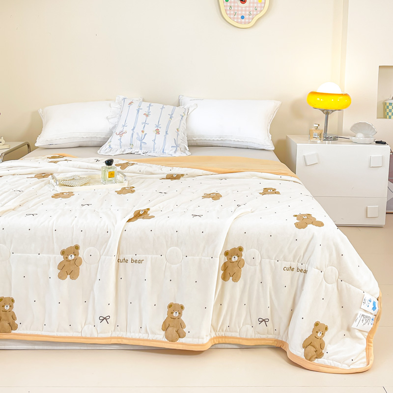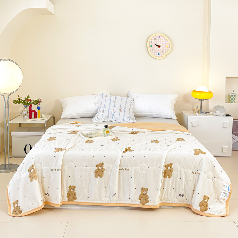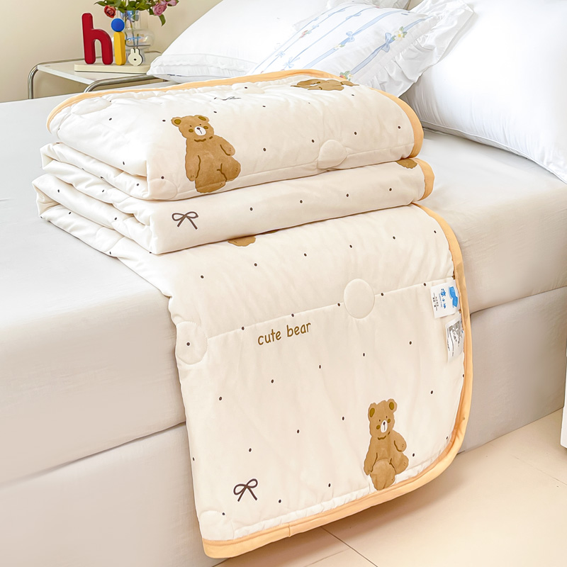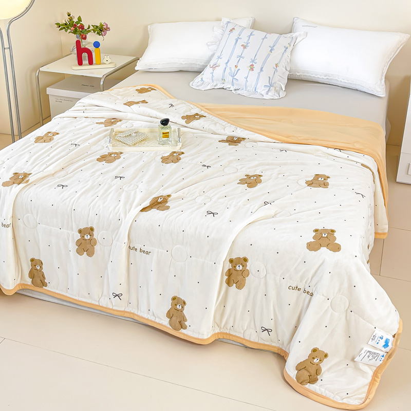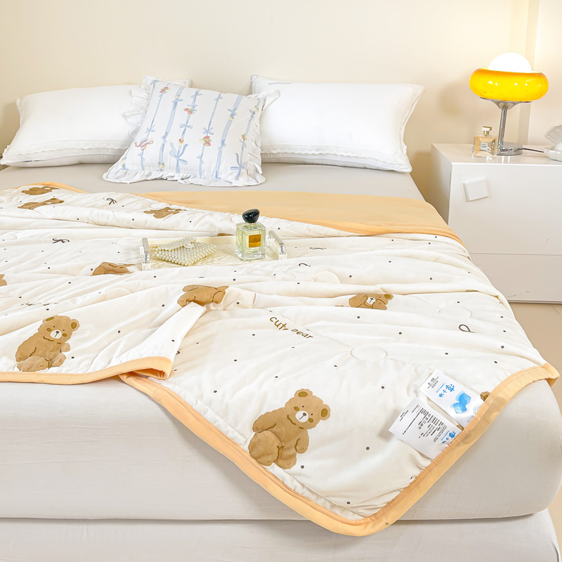 悦织湾家纺2025新款冰丝冰激凌夏被 蒙眼熊-米色