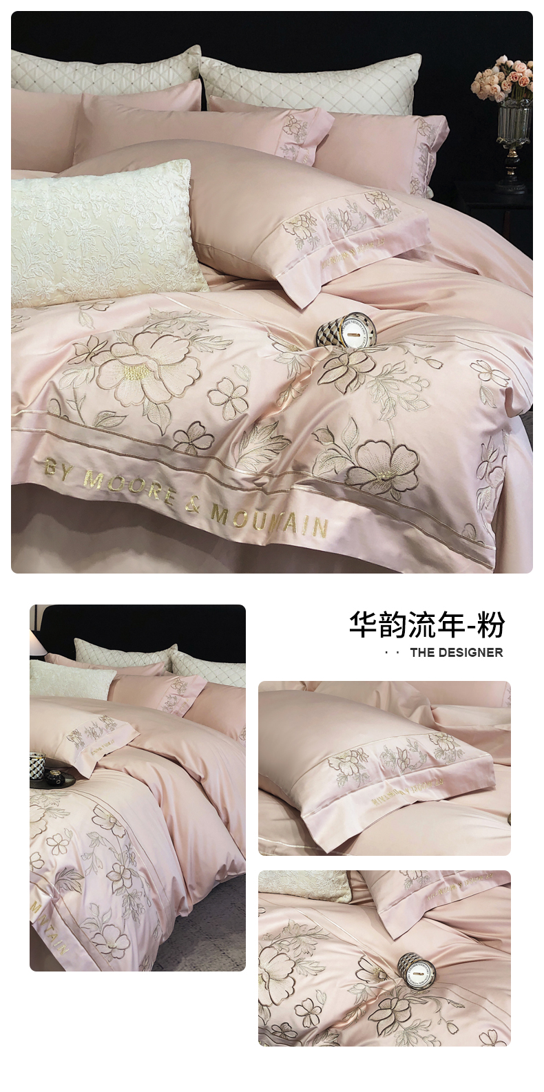 商品名称:慕晨家纺 2025新款40s全棉重工刺绣四件套 华韵流年 粉