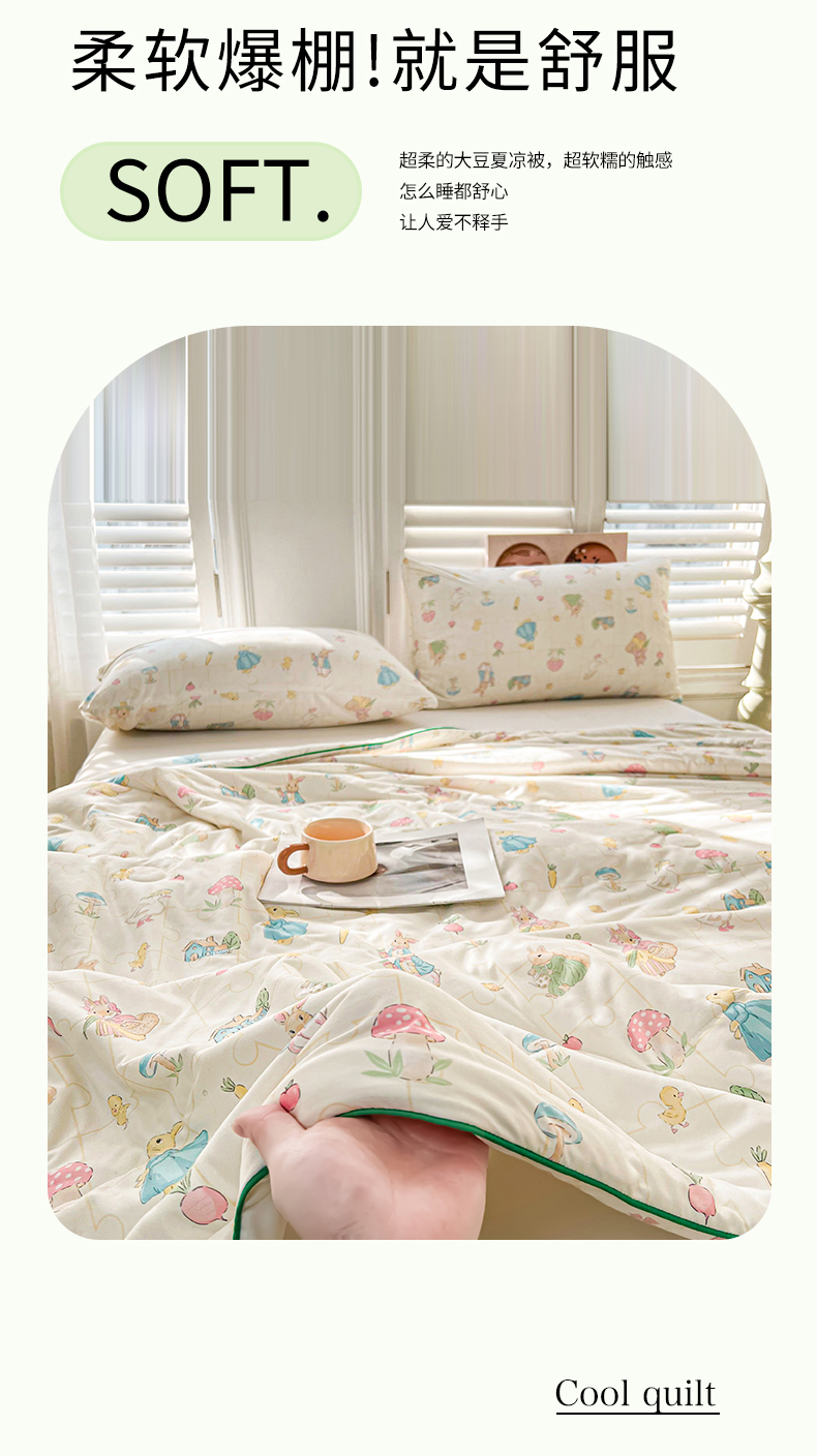 商品名称:欢乐季 2025新款7A抗菌针织棉大豆夏被 萌小兔
