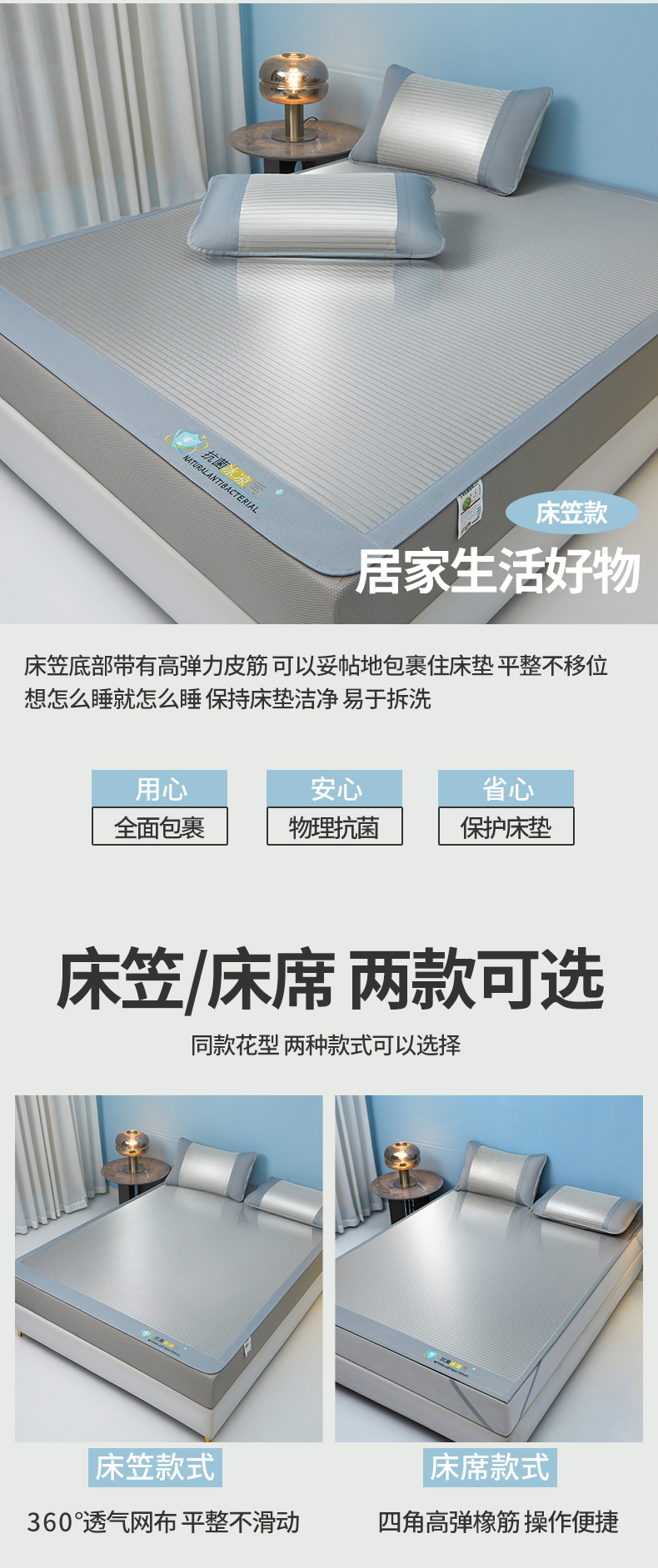 当前位置: 91家纺网 > 商品网购 > 床上用品 > 凉席 > 冰丝席 > 阿亮家居 2025新款凉席抗菌刺绣可水洗碳光冰丝席包边无纺布冰丝席 素夏 绅士灰-床笠款
