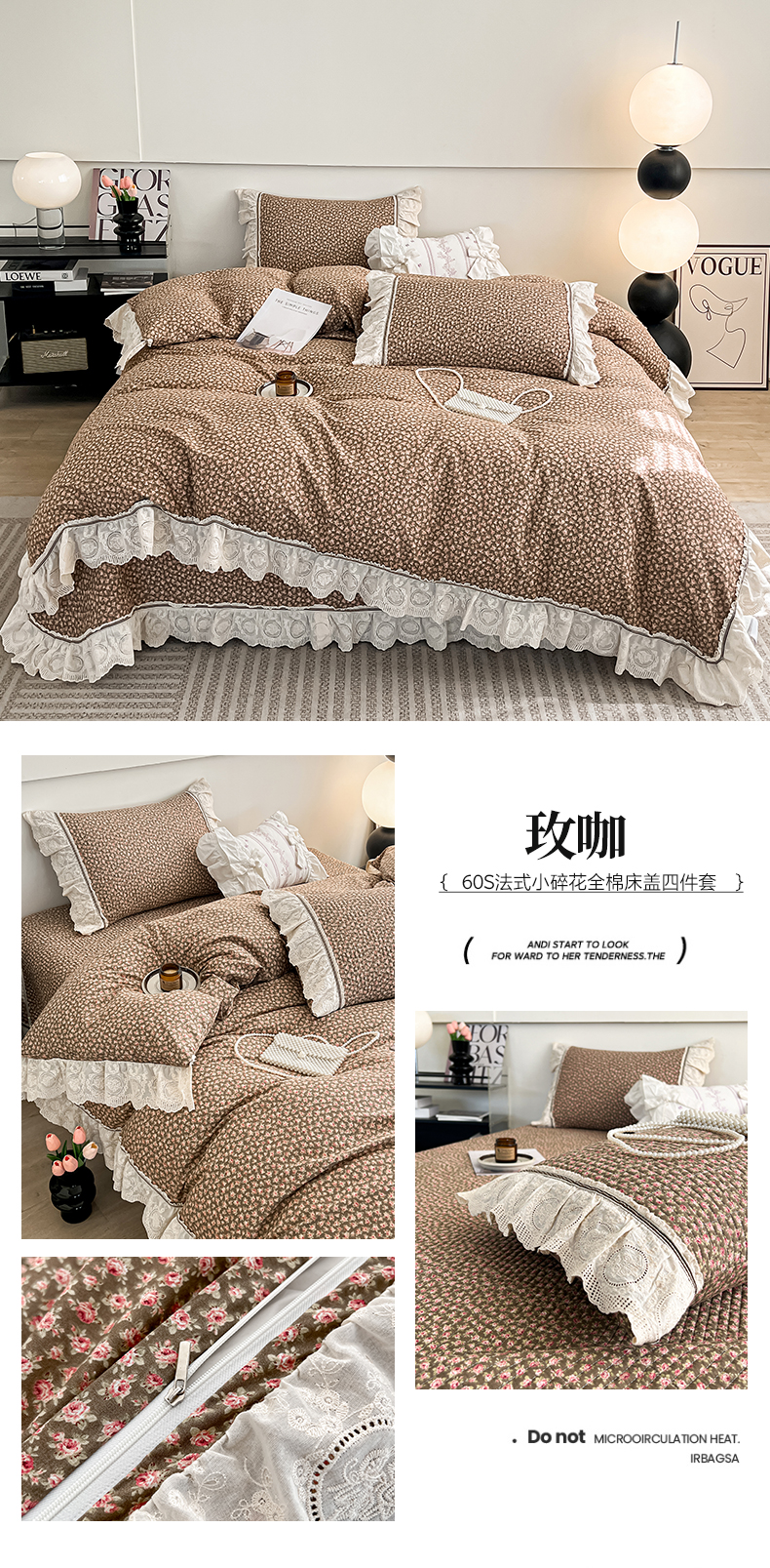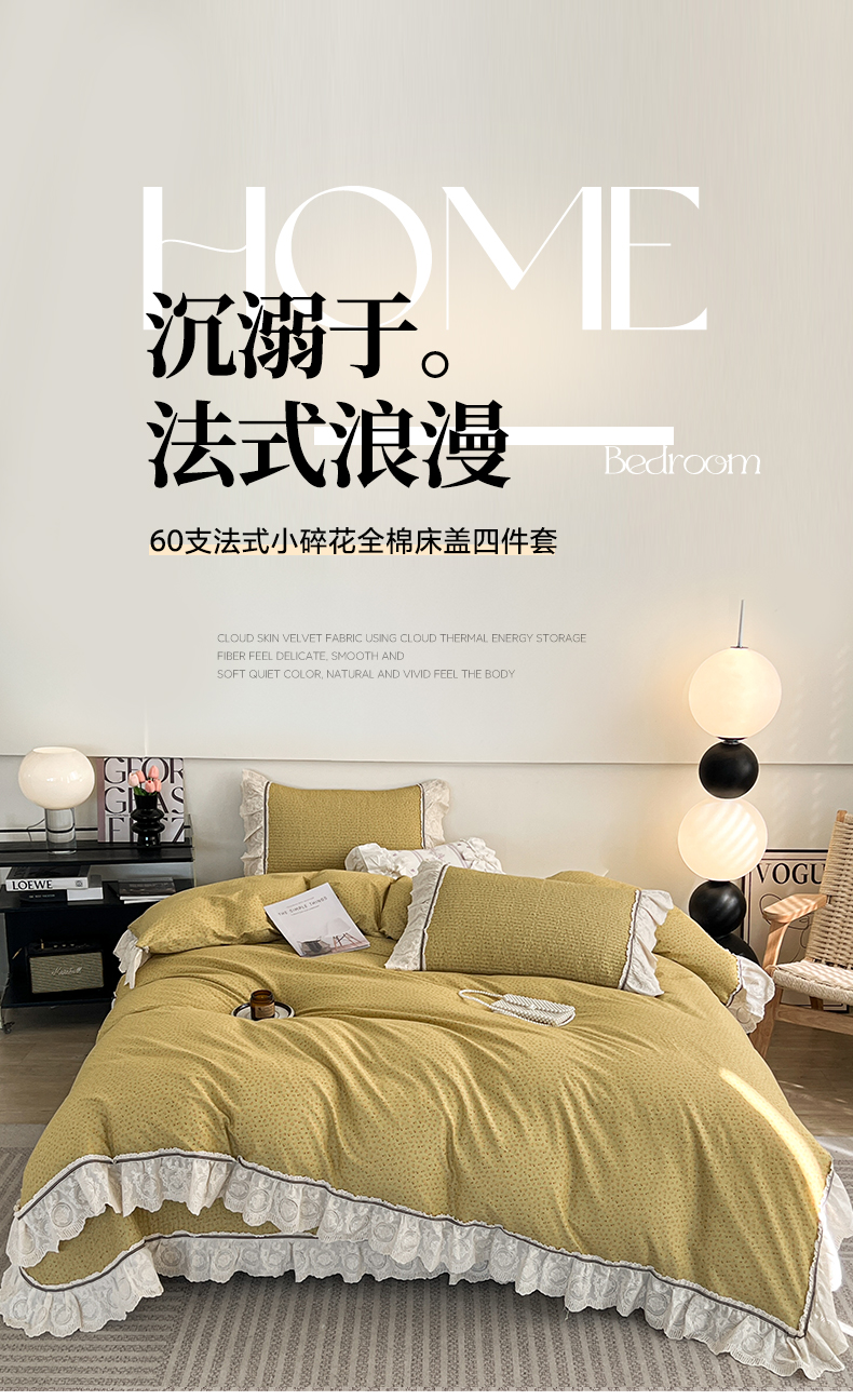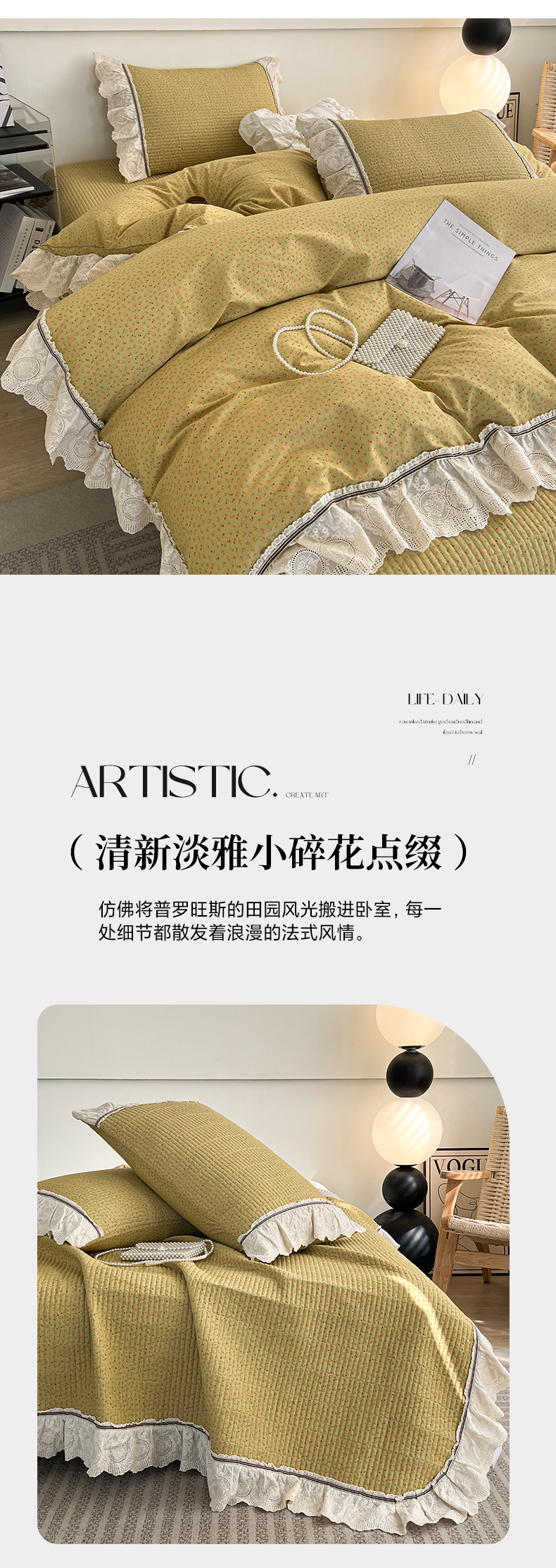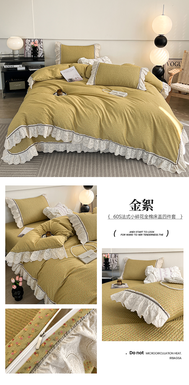 沐纯家居 2025新款法式小碎花床盖四件套 金絮