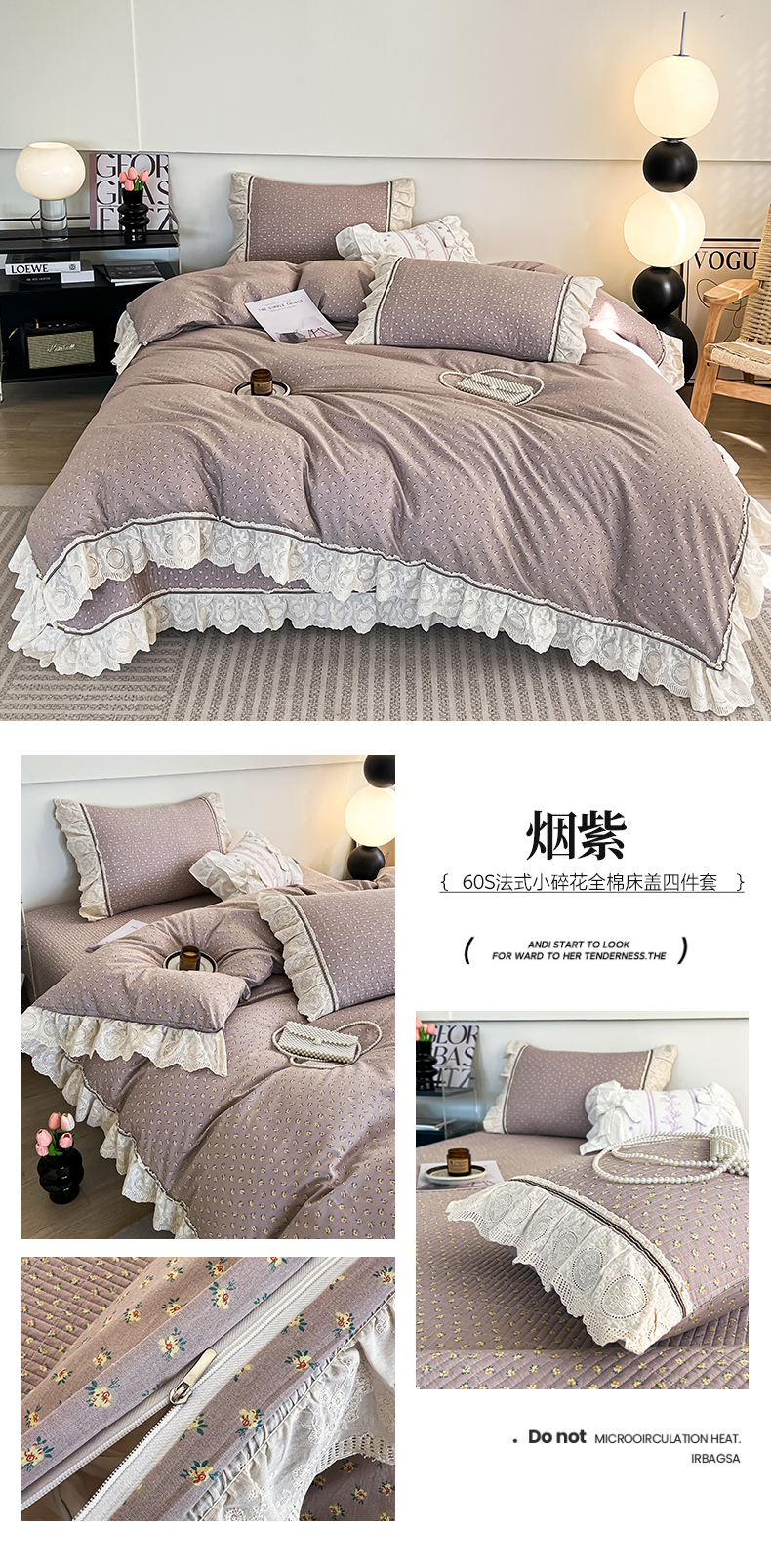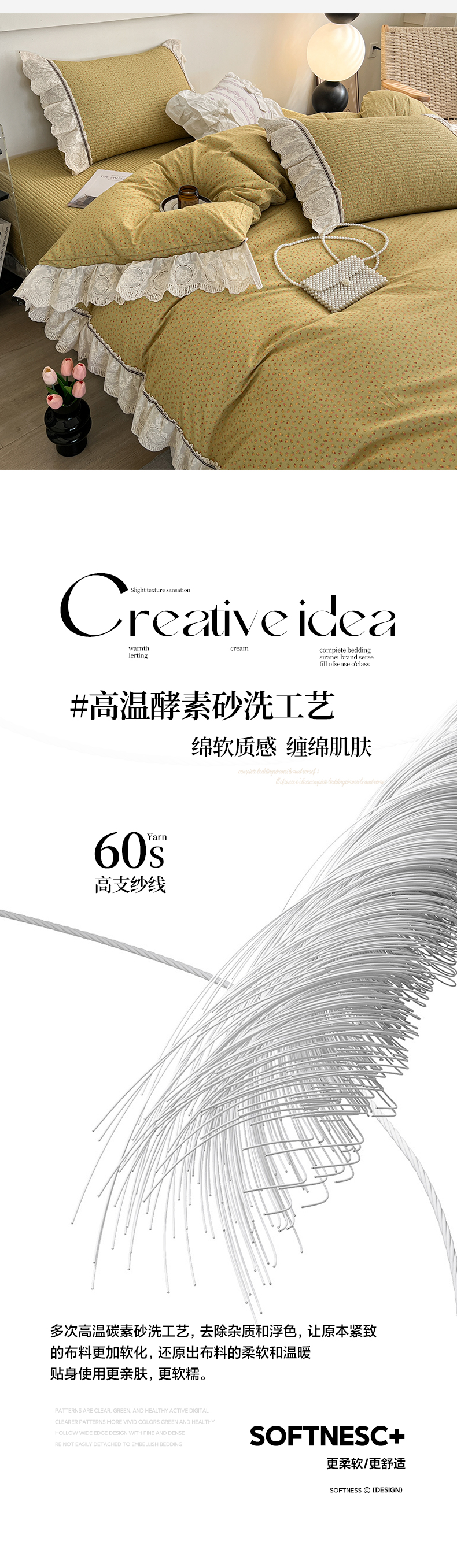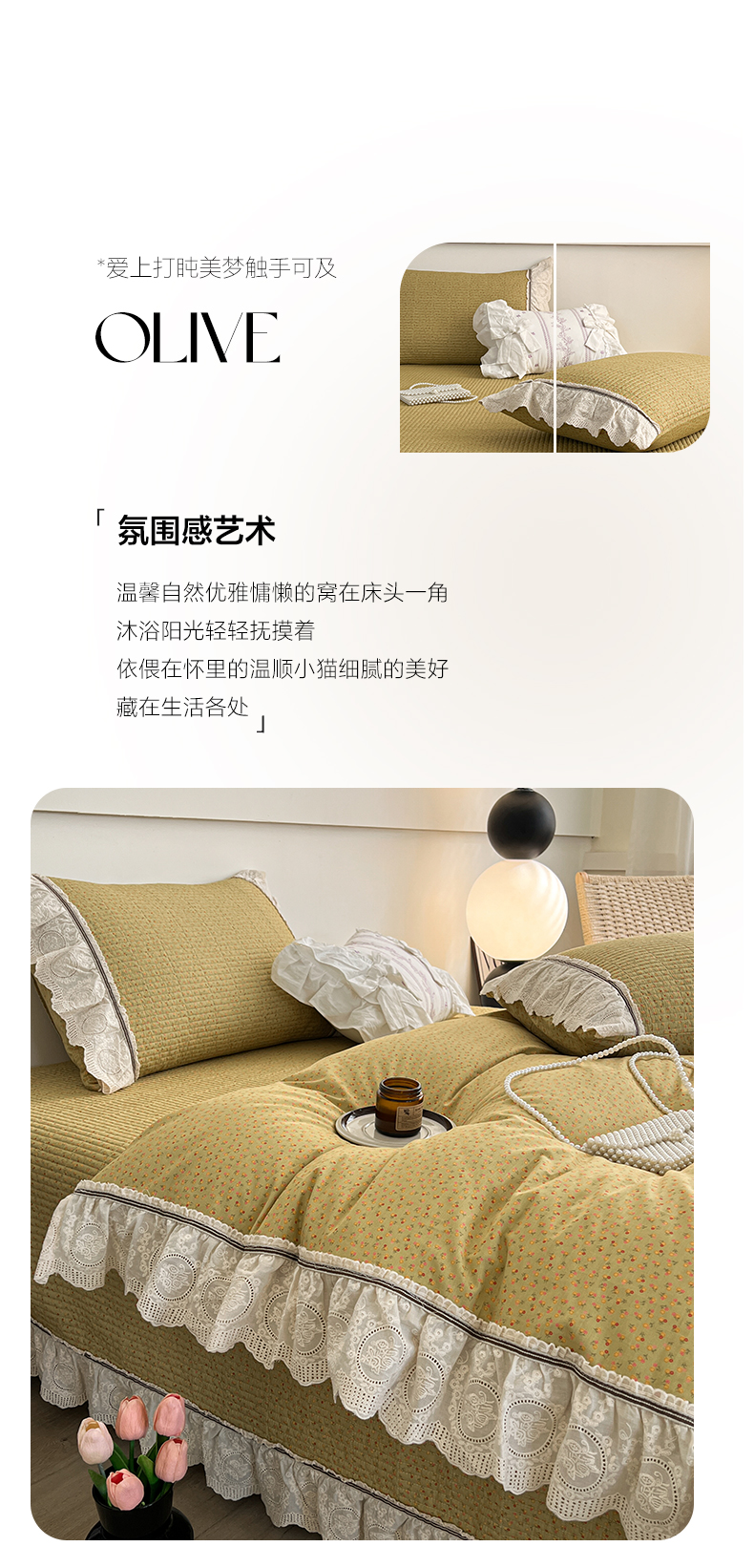 沐纯家居 2025新款法式小碎花床盖四件套 金絮