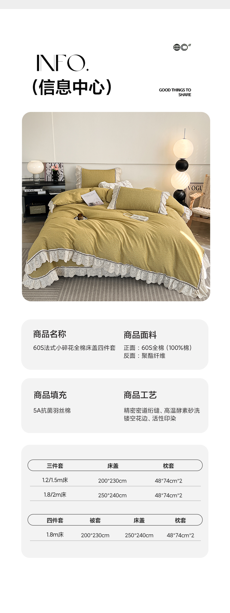 商品名称:沐纯家居 2025新款法式小碎花床盖四件套 金絮