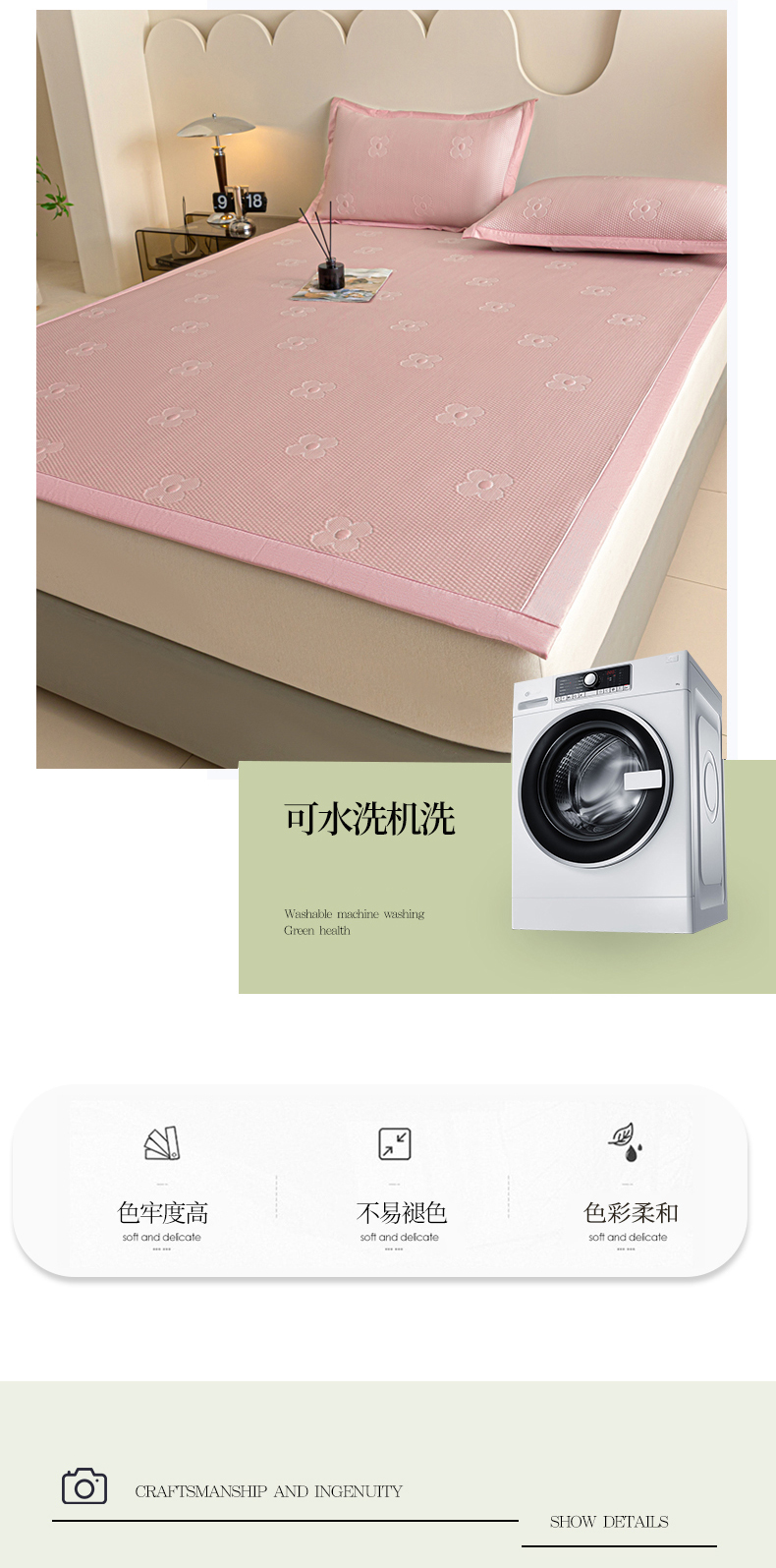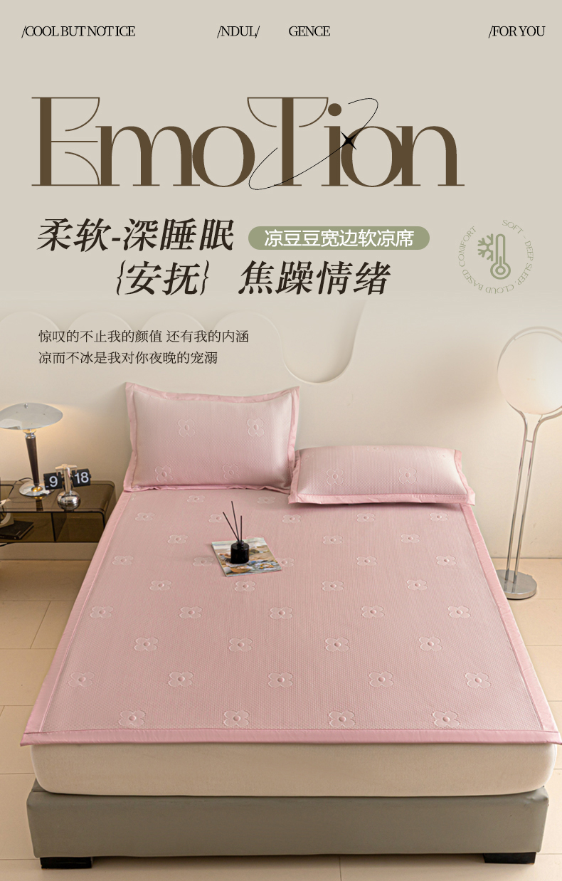 商品名称:阿亮家居 2025新款凉席凉豆豆软席床席款 四叶草-樱花粉