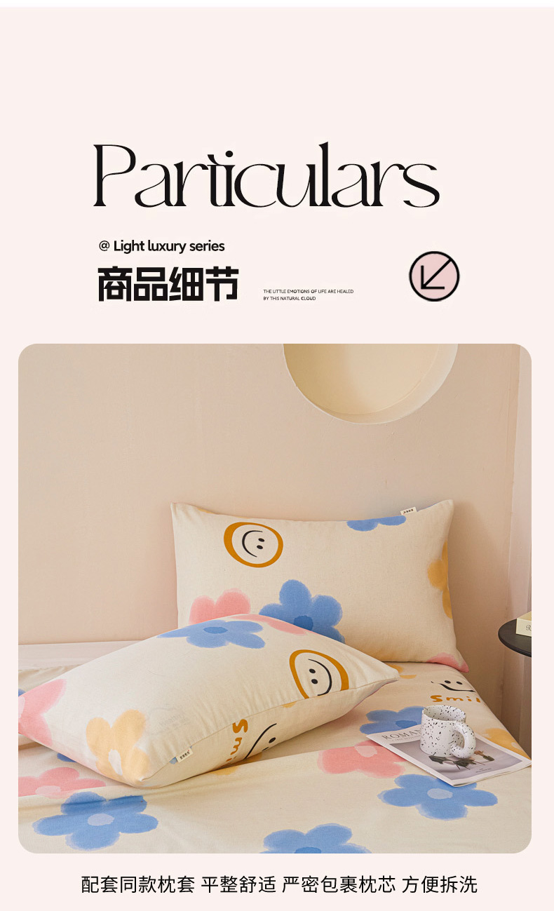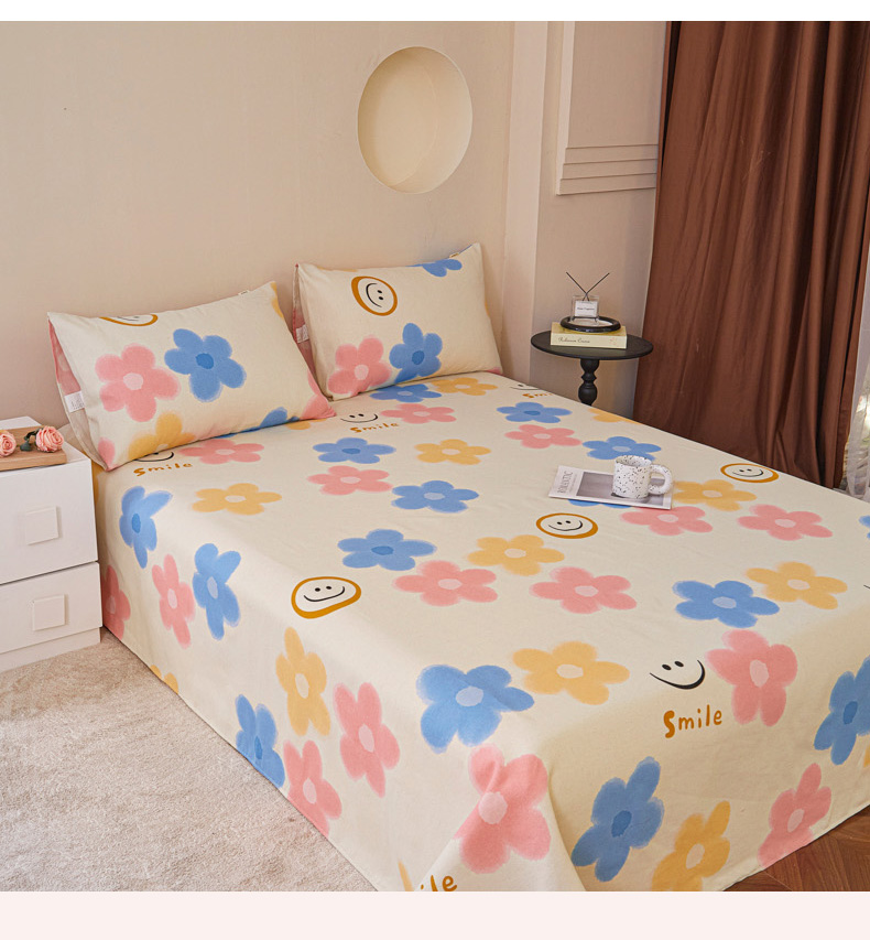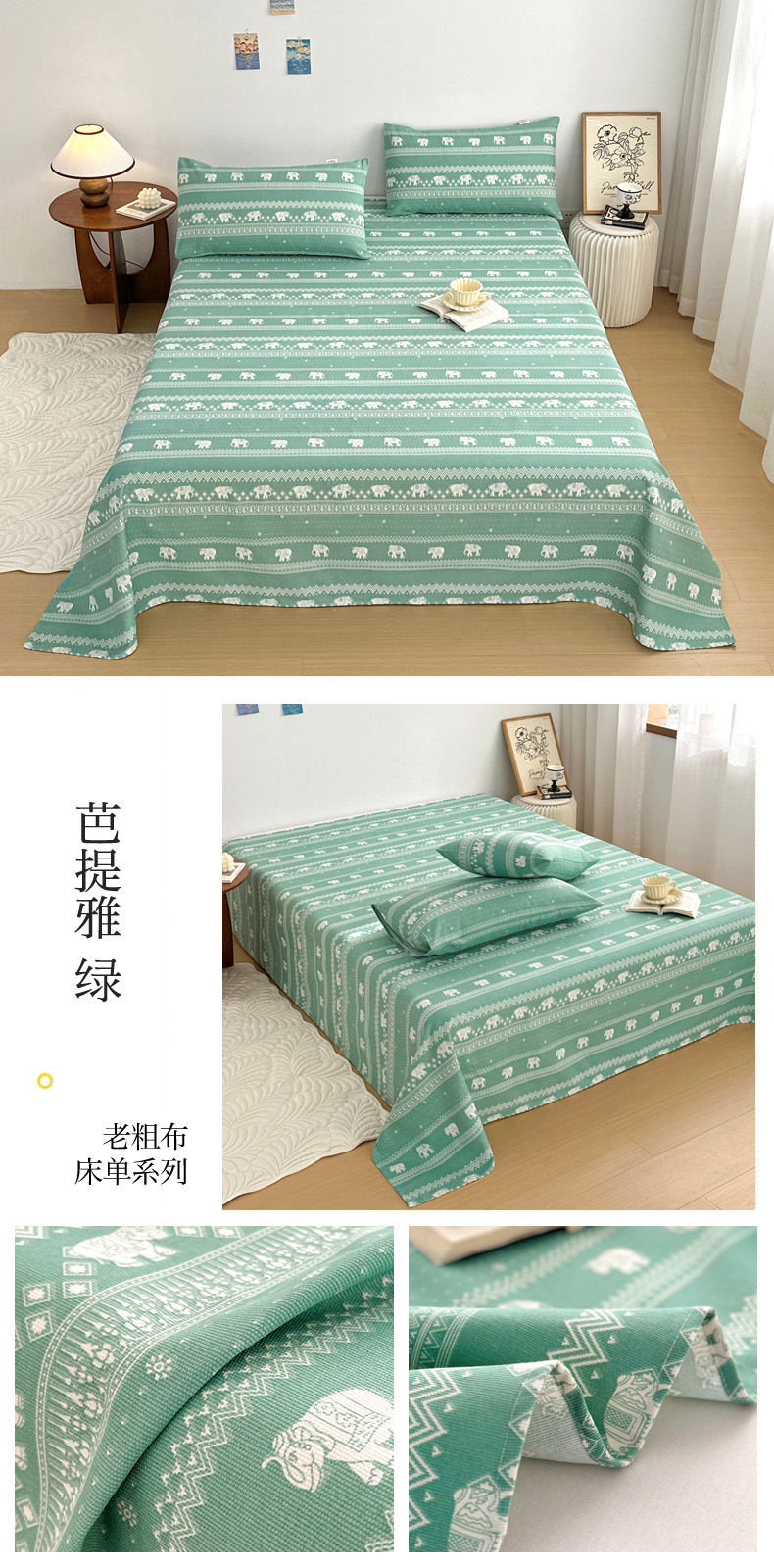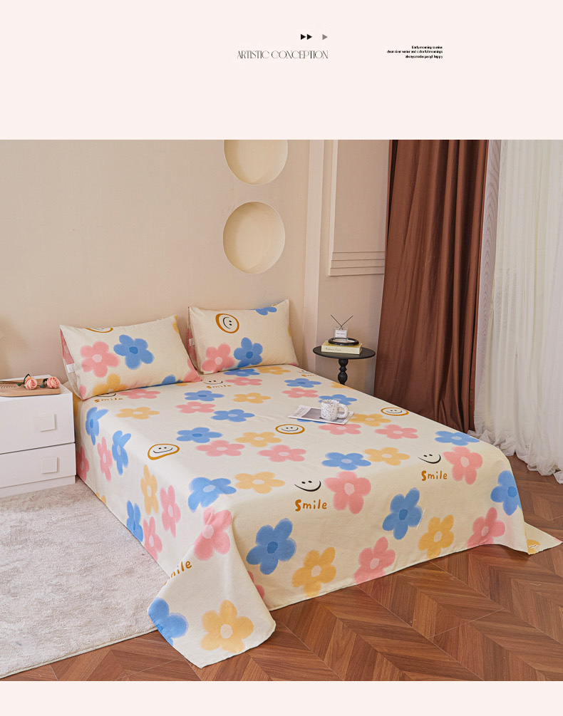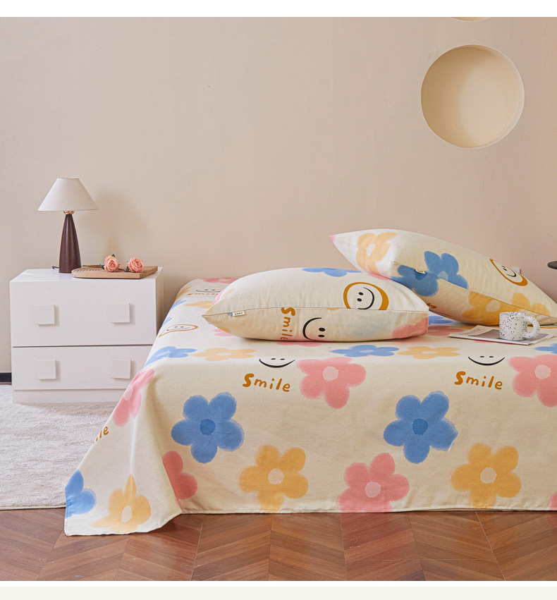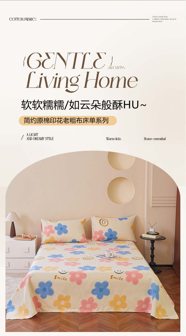 绒艺席业 2025新款简约原棉印花老粗布床单 笑脸