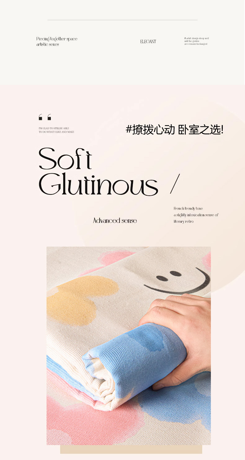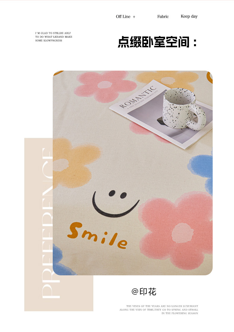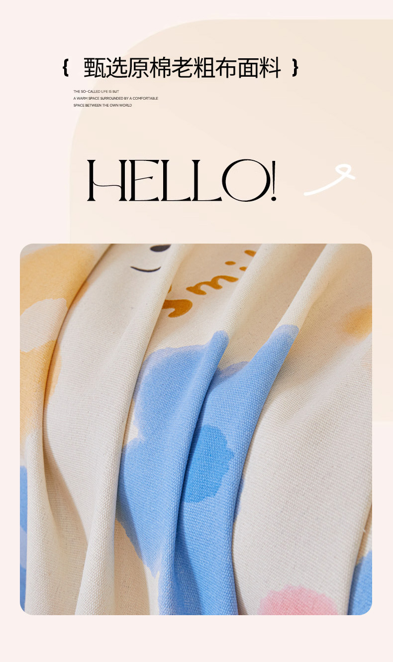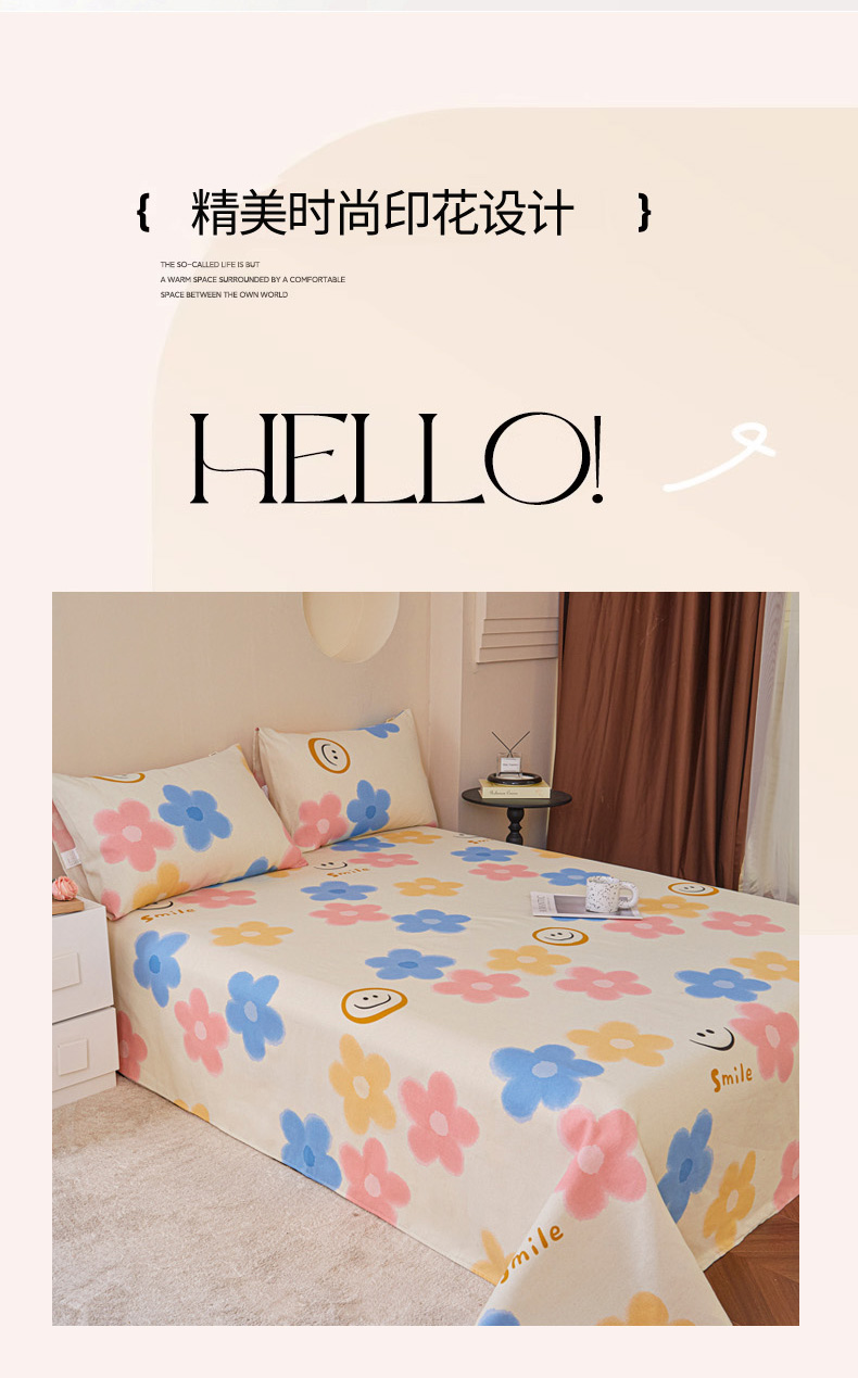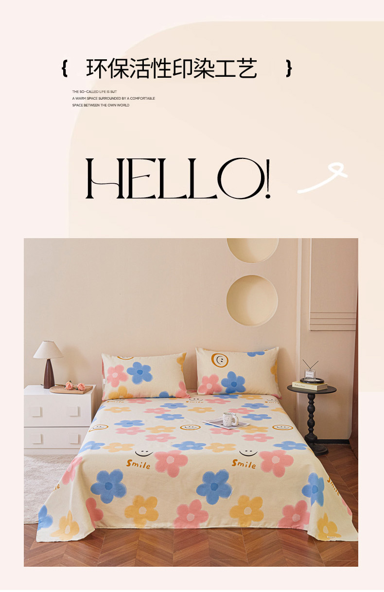 • 91家纺网 家纺一手货源 找家纺 绒艺席业 2025新款简约原棉印花老粗布床单 笑脸