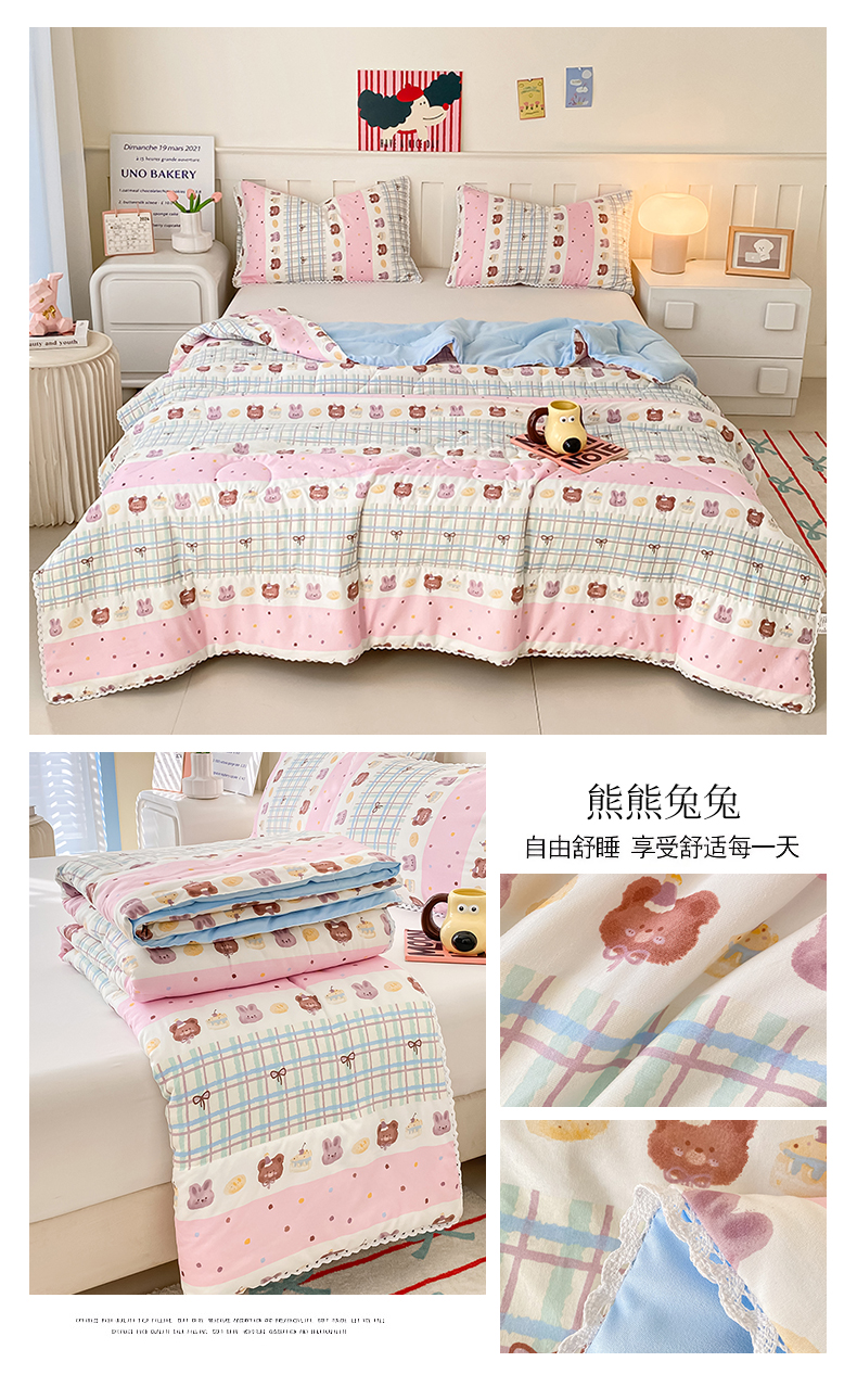 商品名称:佰亿莱 2025春夏新款水洗棉羽丝绒小花边夏被夏凉被空调被 熊熊兔兔