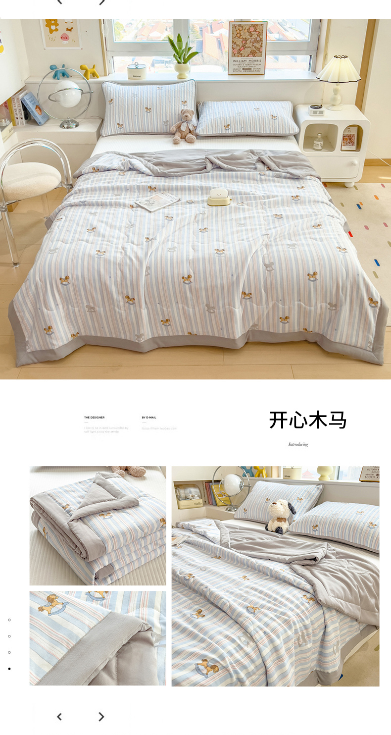 • 91家纺网 家纺一手货源 找家纺 慕木 2025春夏新款双层纱针织棉夏被夏凉被空调被 开心木马