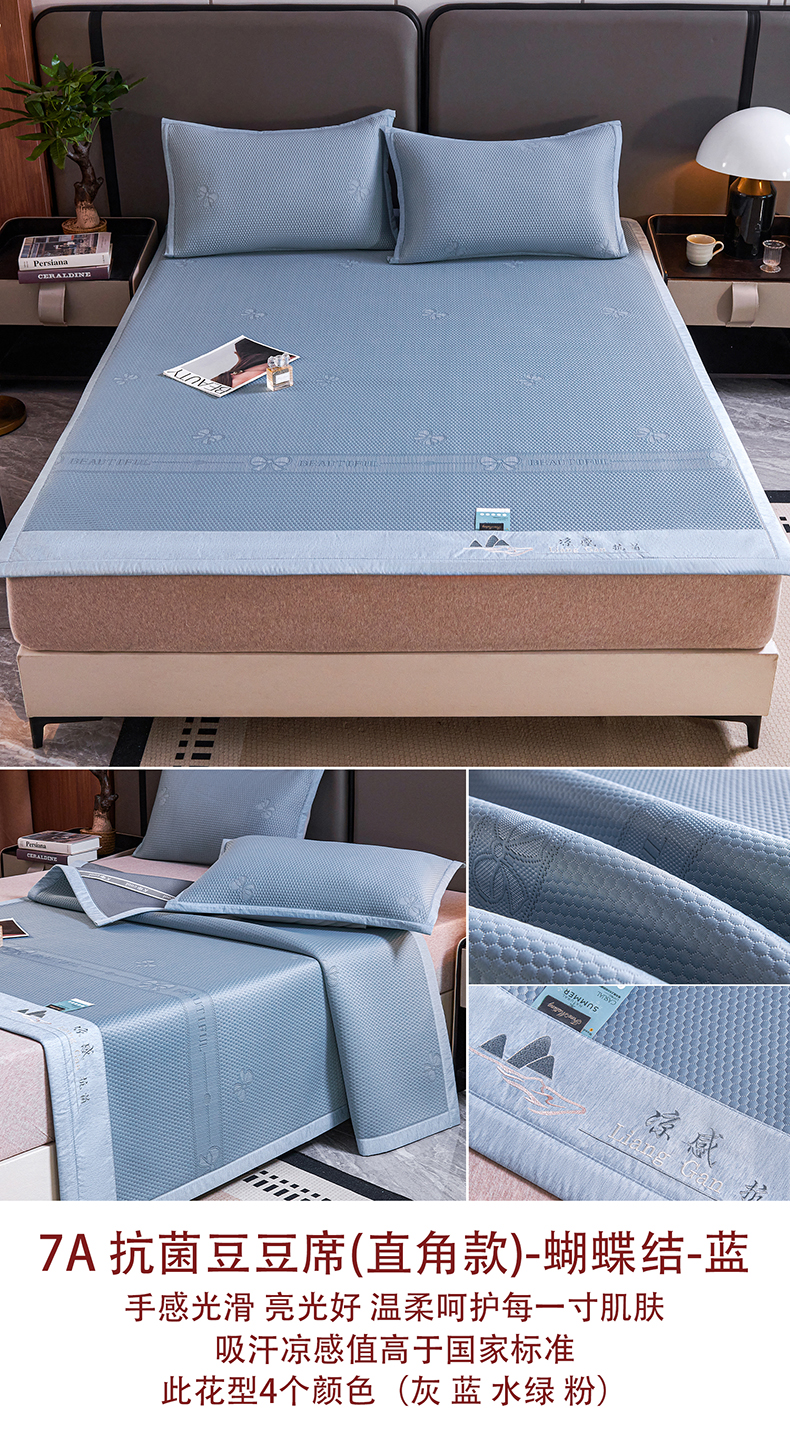 商品名称:梵克保罗 2025新款7A抗菌母婴级纯乙纶PE刺绣凉感丝豆豆席 蝴蝶结-绿