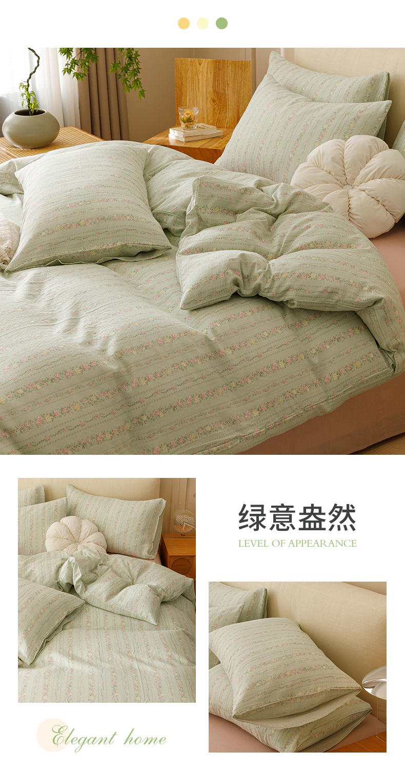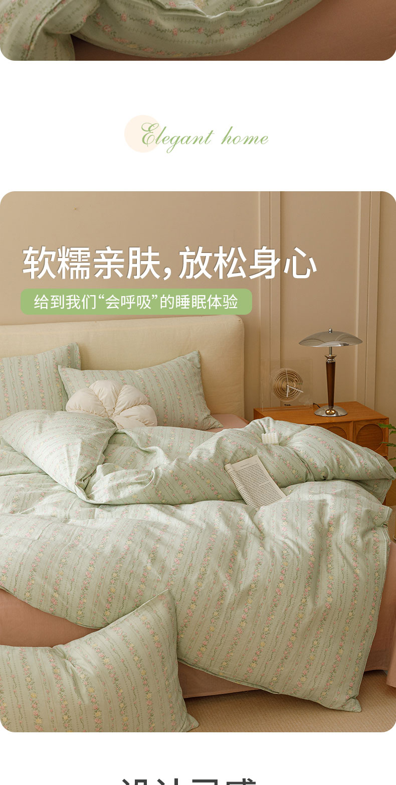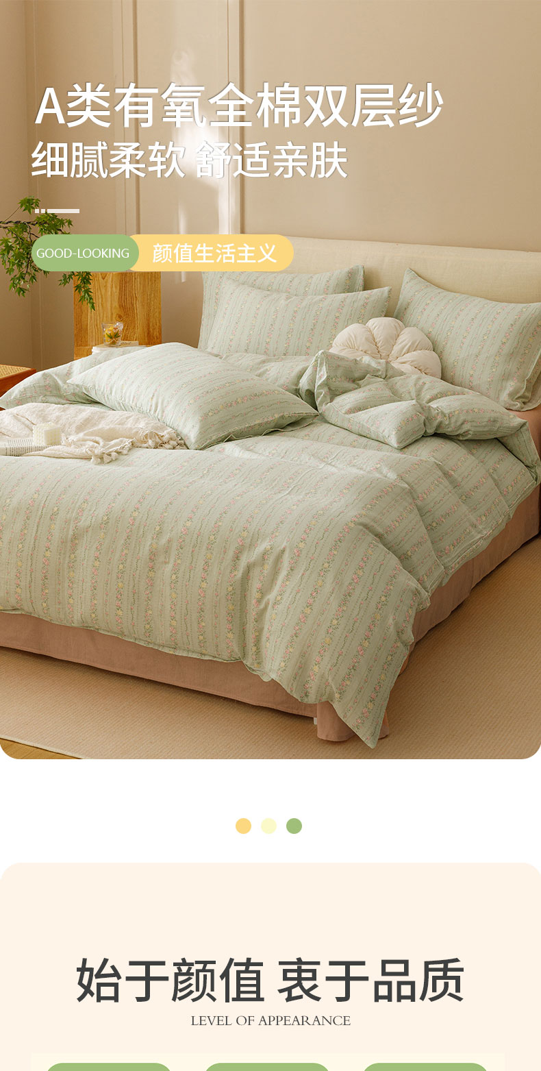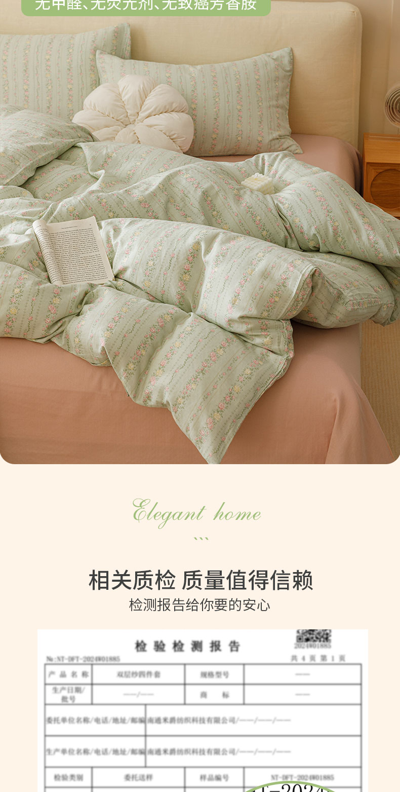 商品名称:瑞米家居 2024新款亲肤舒适A类双层纱四件套 绿意盎然