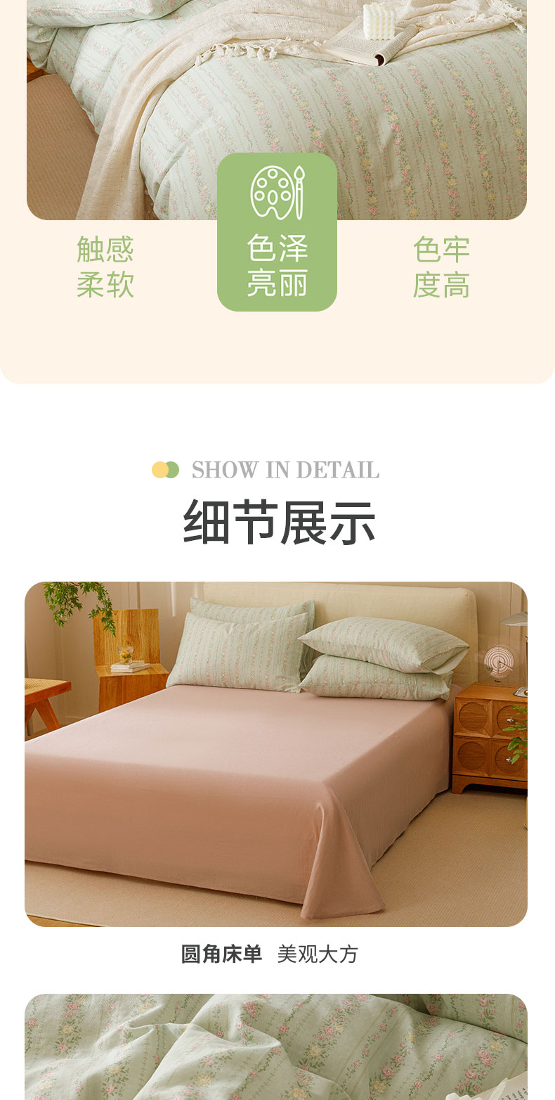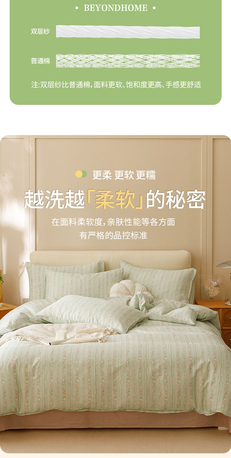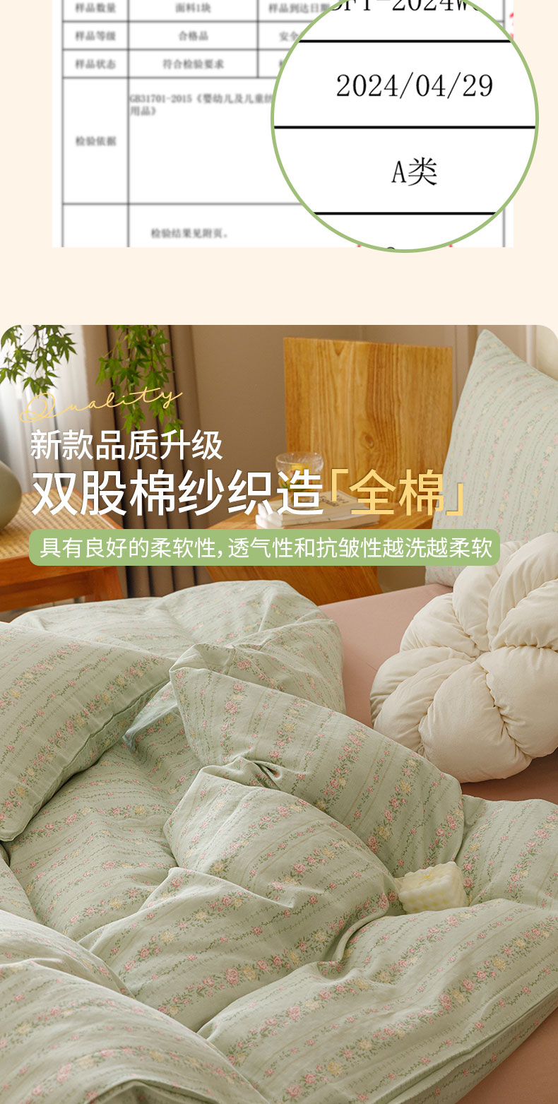 商品名称:瑞米家居 2024新款亲肤舒适A类双层纱四件套 绿意盎然