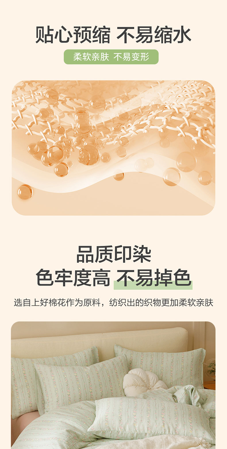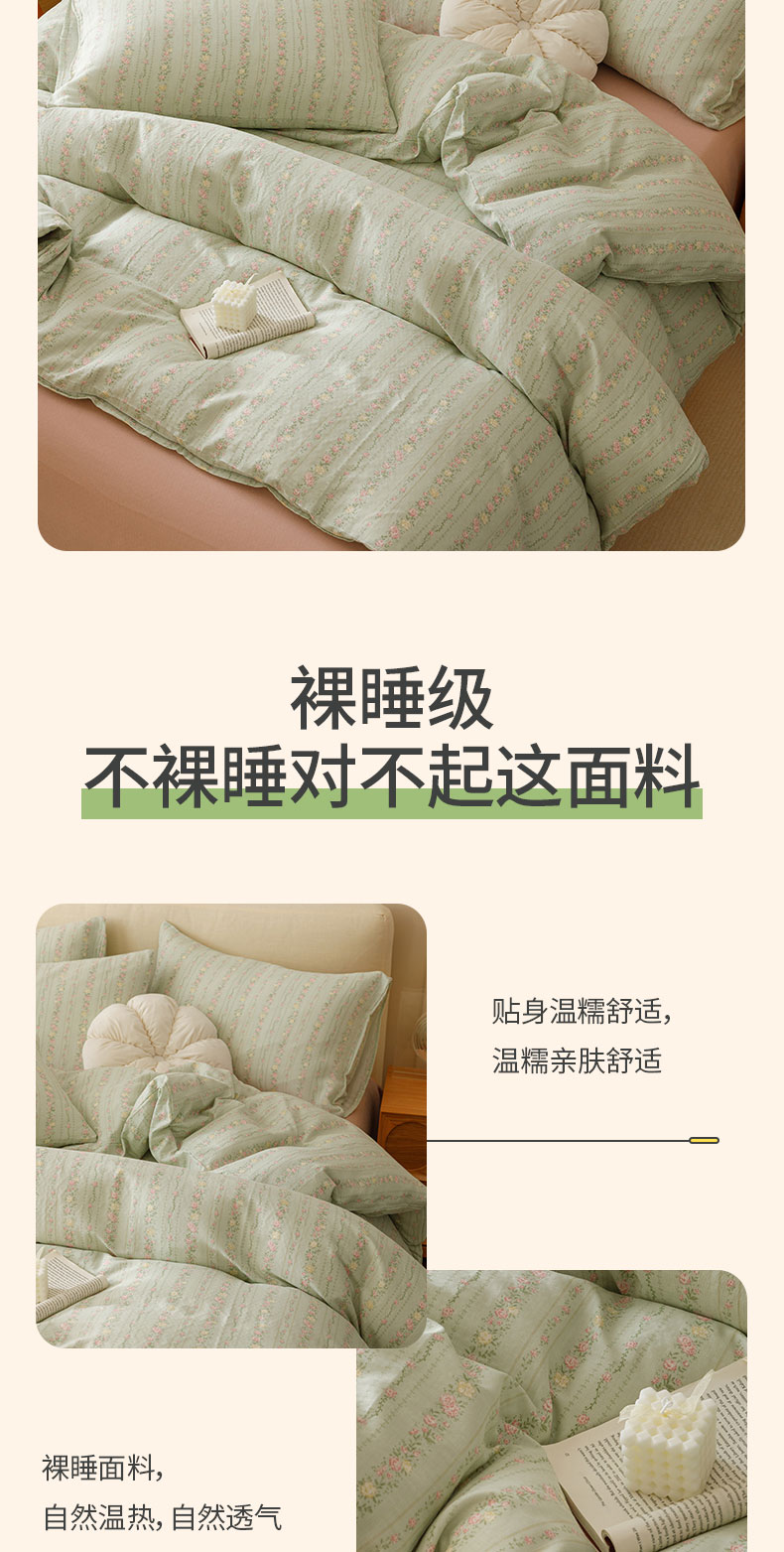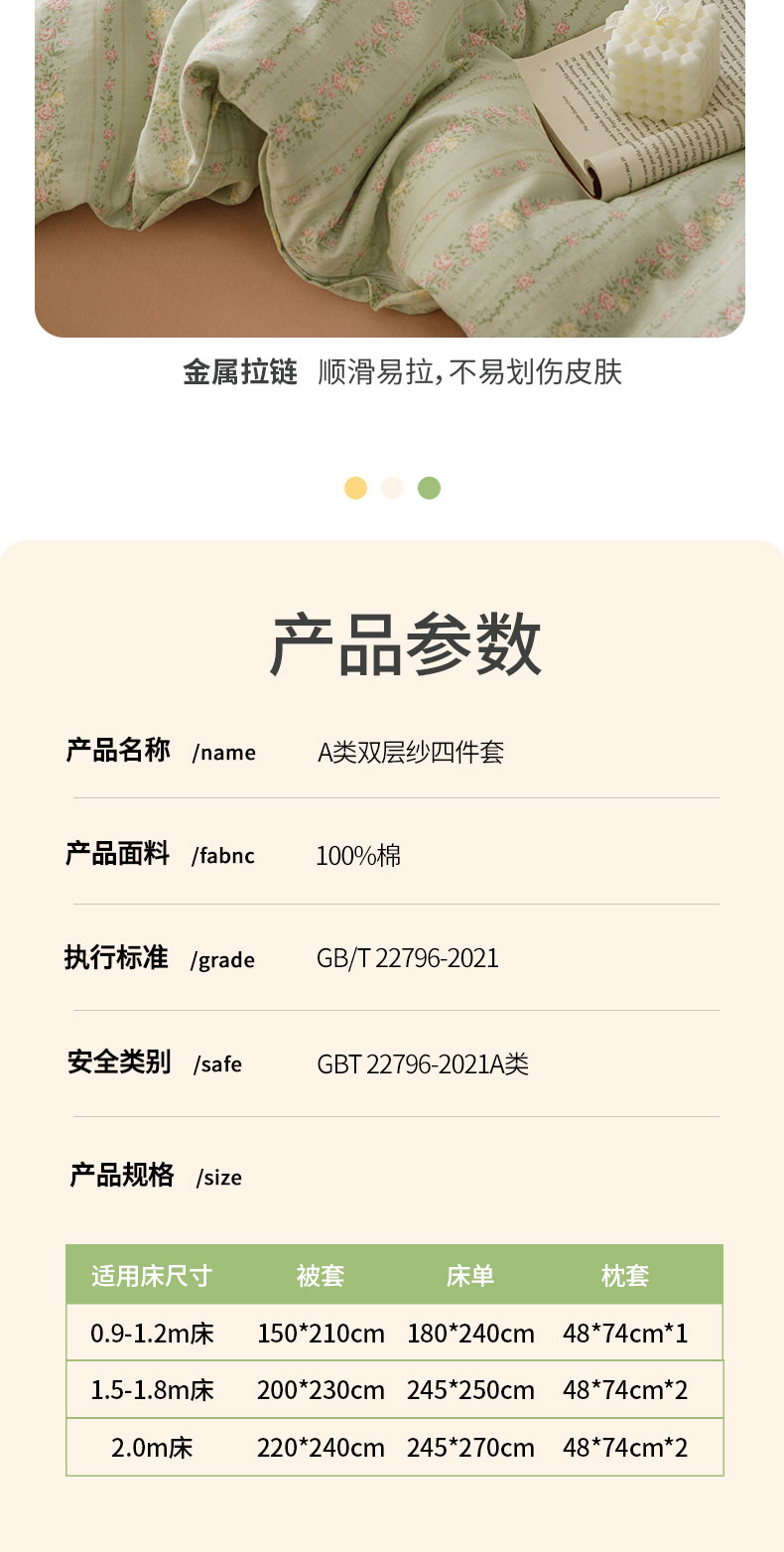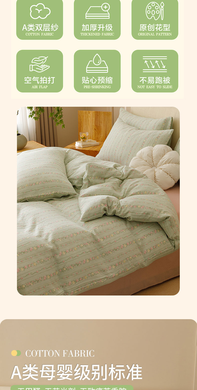 商品名称:瑞米家居 2024新款亲肤舒适A类双层纱四件套 绿意盎然