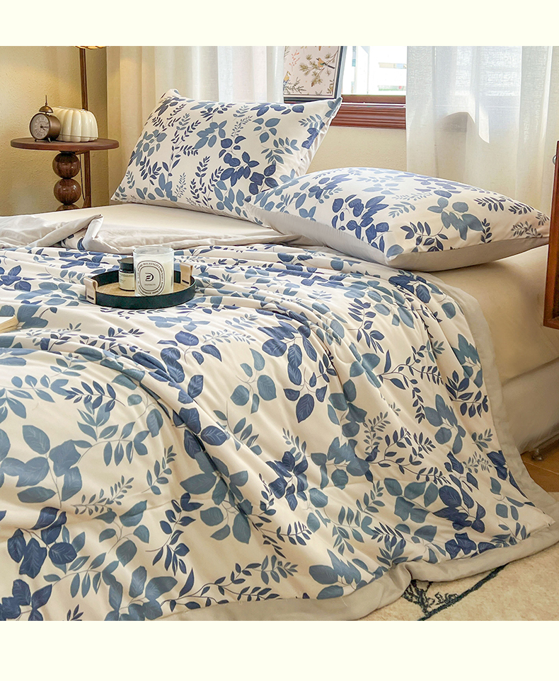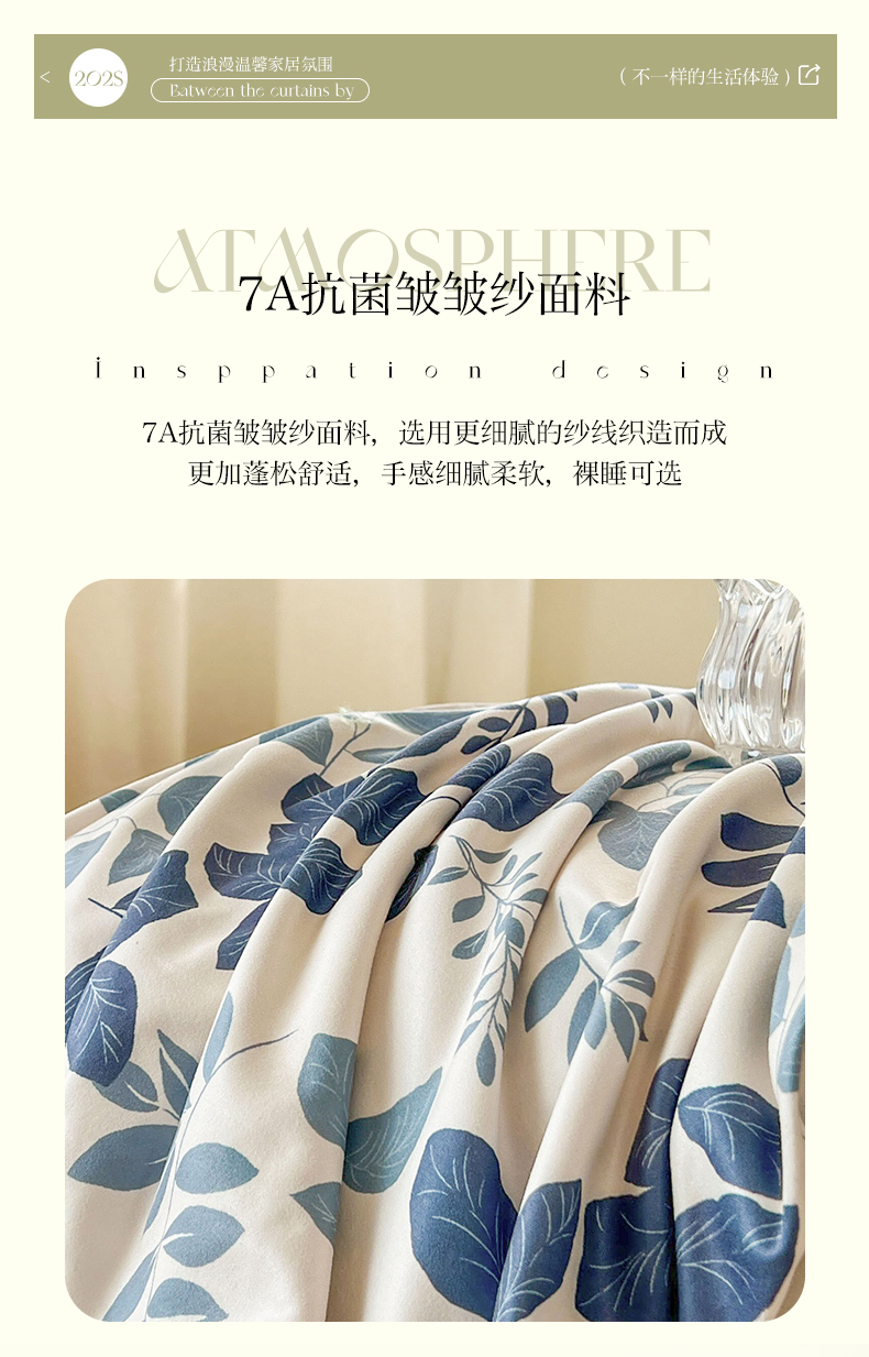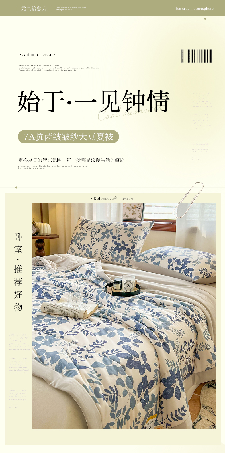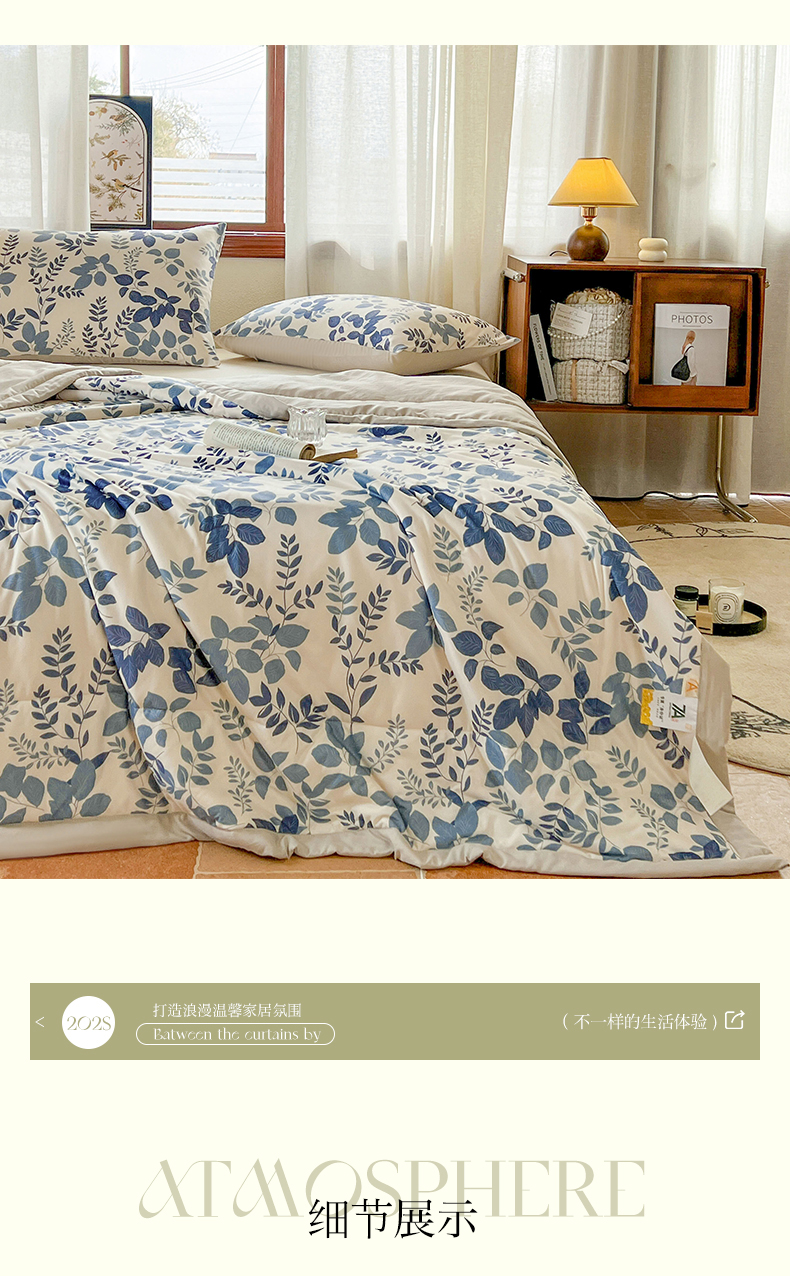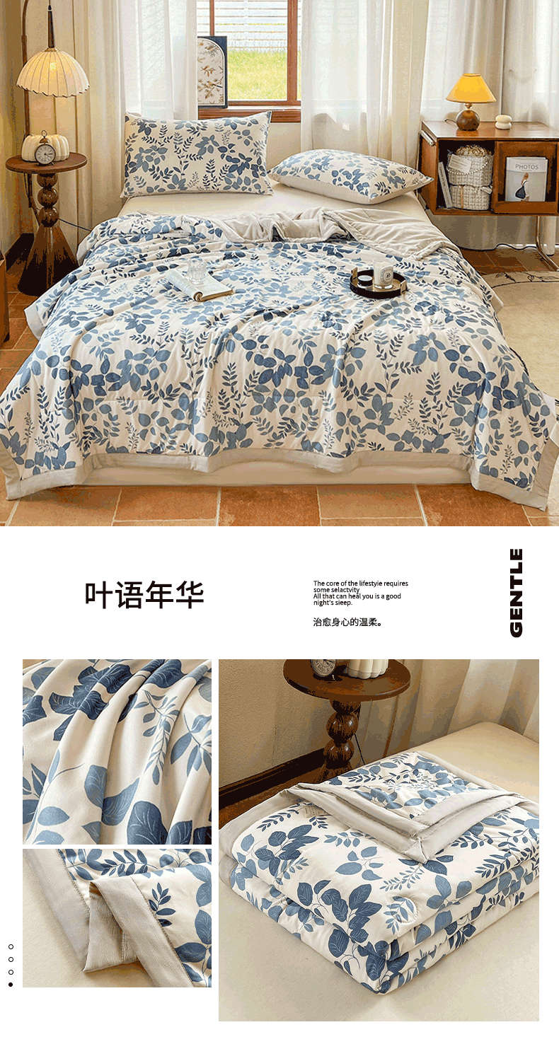 商品名称:欢乐季 2025新款7A抗菌双层皱皱纱大豆夏被夏凉被空调被 叶语年华