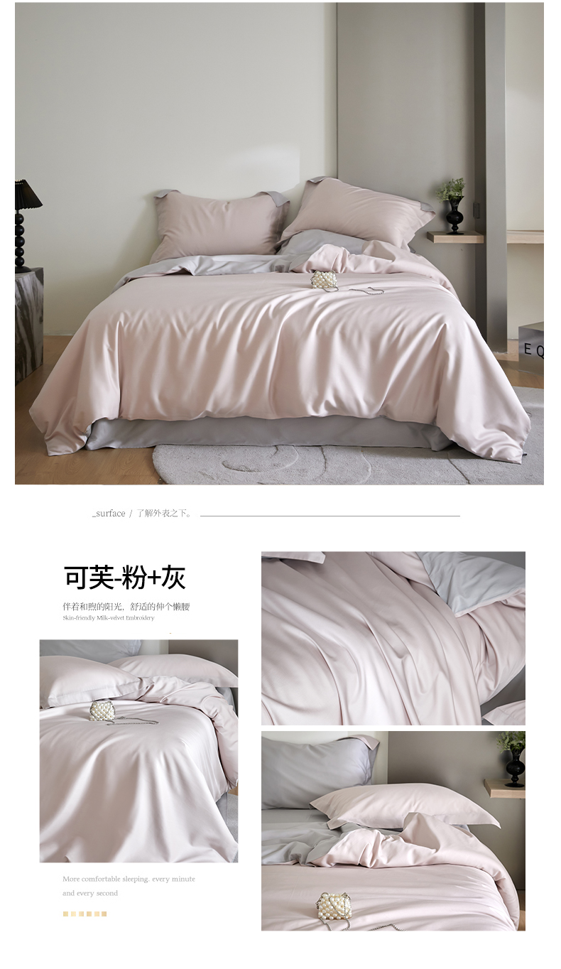 金奇达2025新款【可芙】-轻氧水光天丝棉四件套(标准号全网控价(折后券后)不低于238元) 可芙-粉+灰